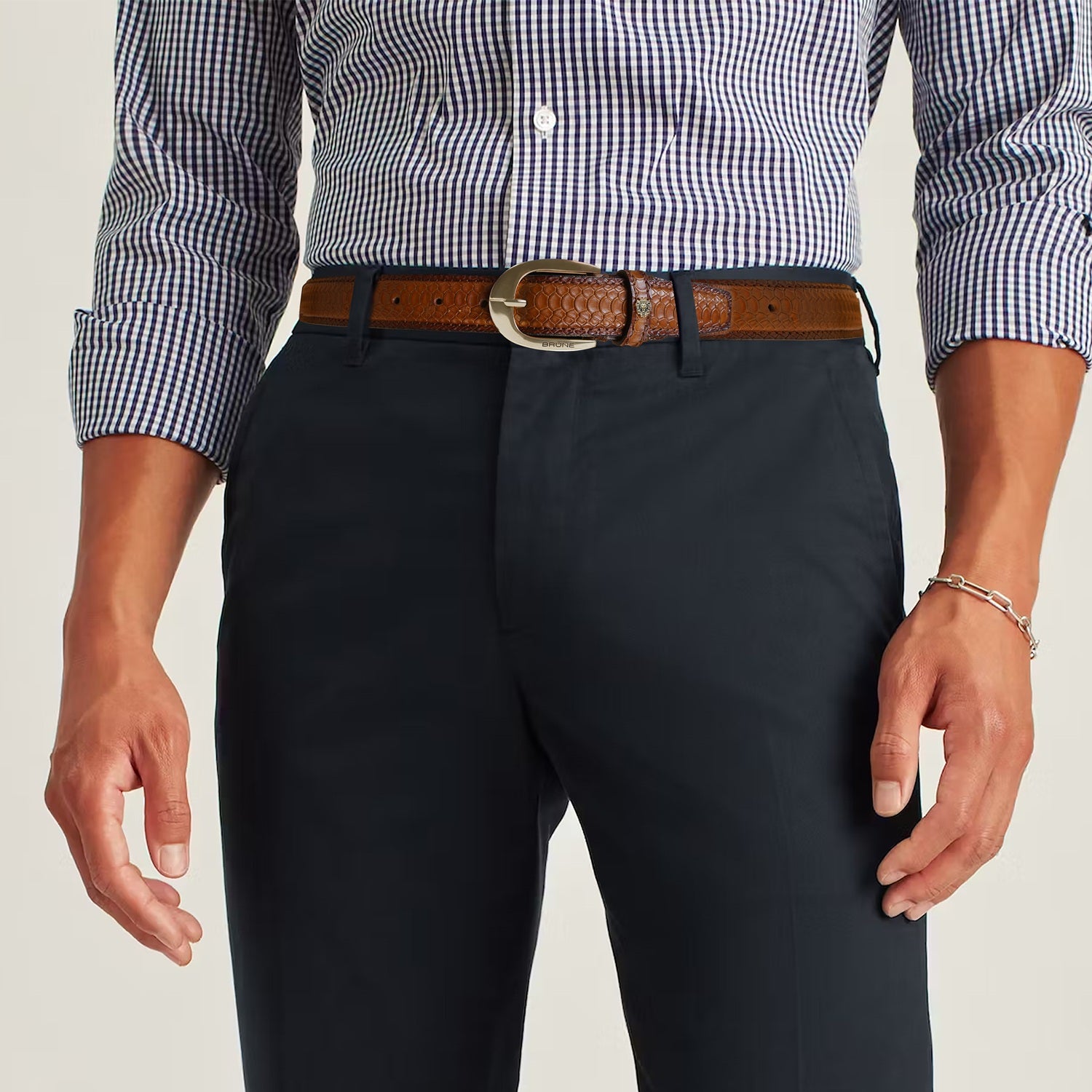 Elevate your style with our Snake Skin Textured Belt in Tan Leather. Hand crafted from premium quality leather, this men's formal belt features a brand brune & bareskin design for an eye-catching look. The exact feel of snake skin is captured in the texture, while the mini metal lion logo and golden finish oval shape buckle add a touch of sophistication. Durable and stylish, this belt is a must-have accessory for any wardrobe!