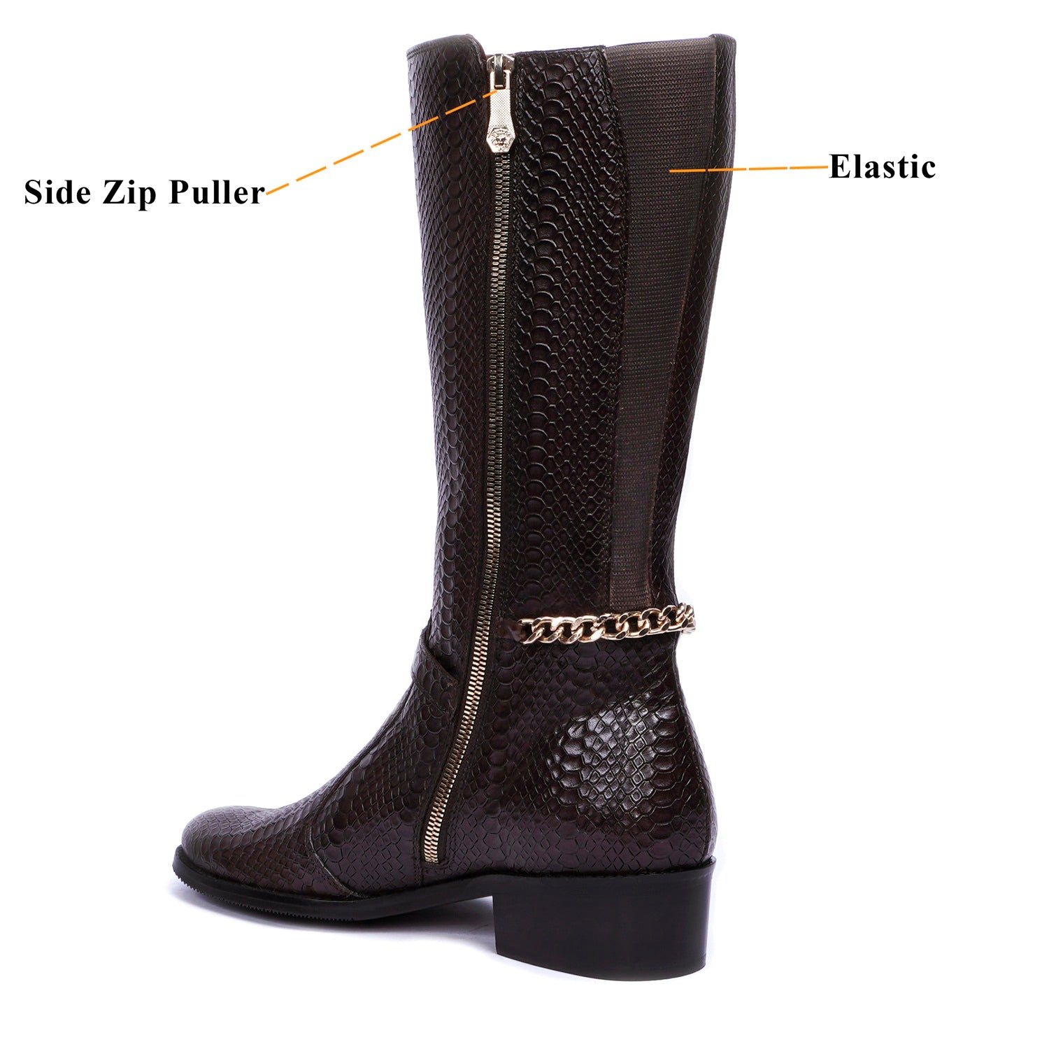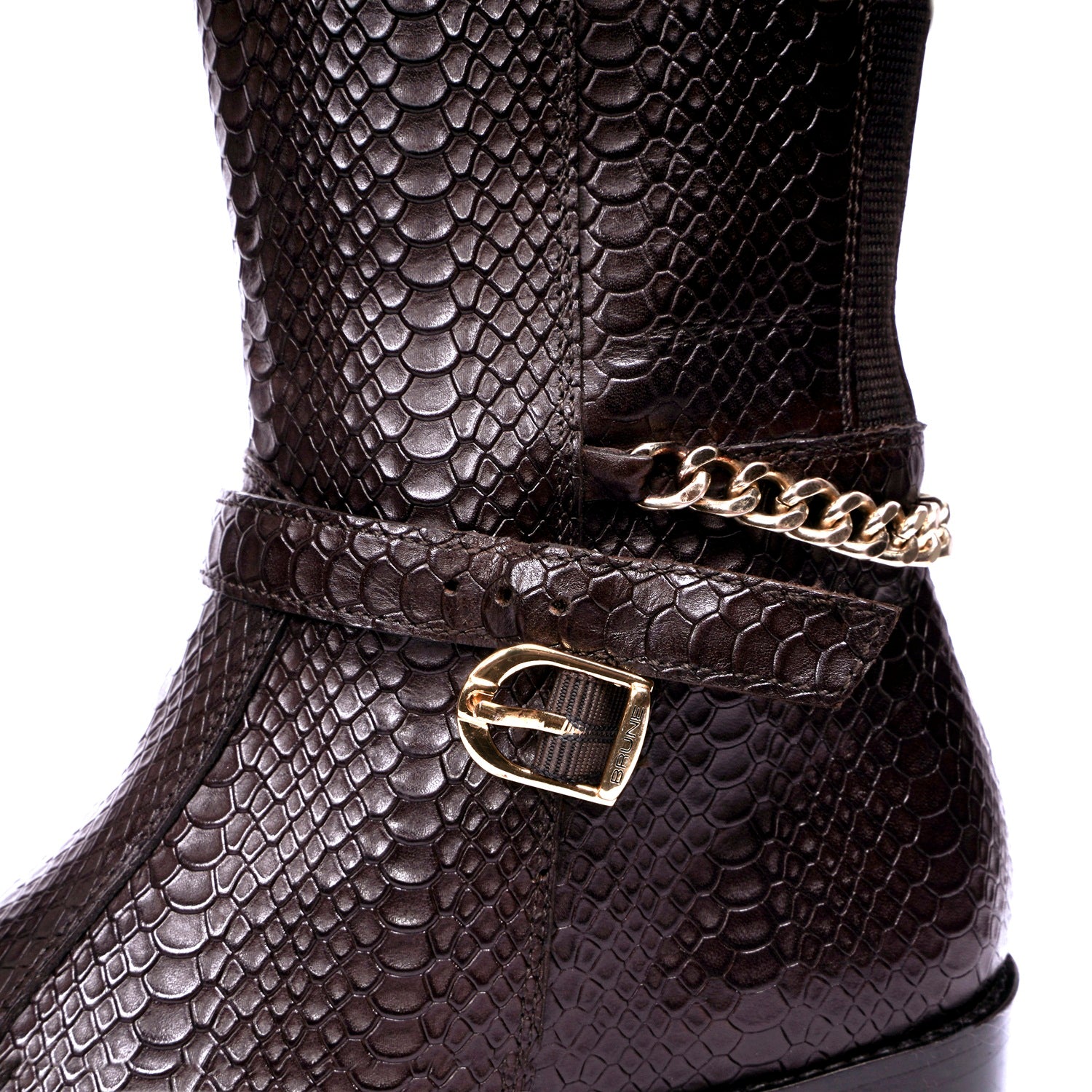 Snake Textured Golden Chain with Buckle & Zip Closure Leathe Boots
