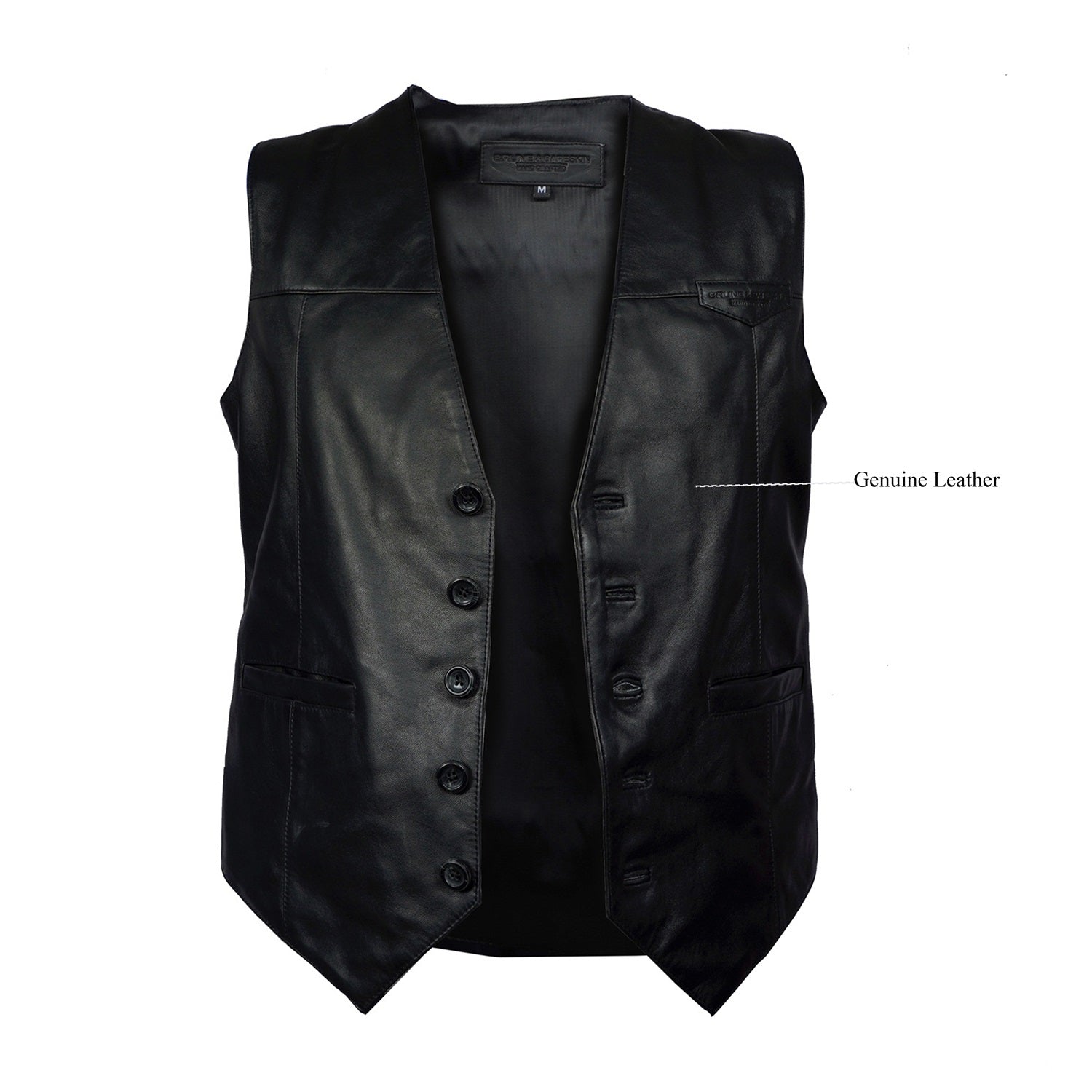 V Neck Stitched Leather Fabric Vest with Button Closure