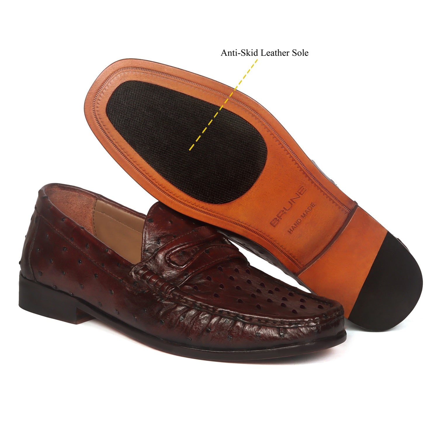 Brune & Bareskin has mastered the art of perfection with their traditional techniques involving the Quality of leathers. The Real Ostrich Leather loafers are a timeless piece, sure to add a touch of luxury to your wardrobe.