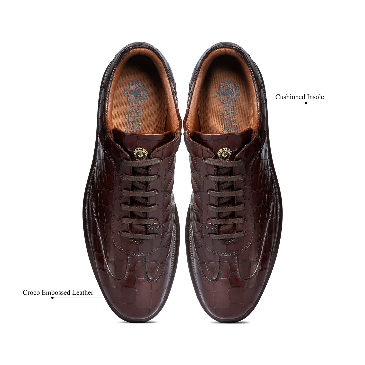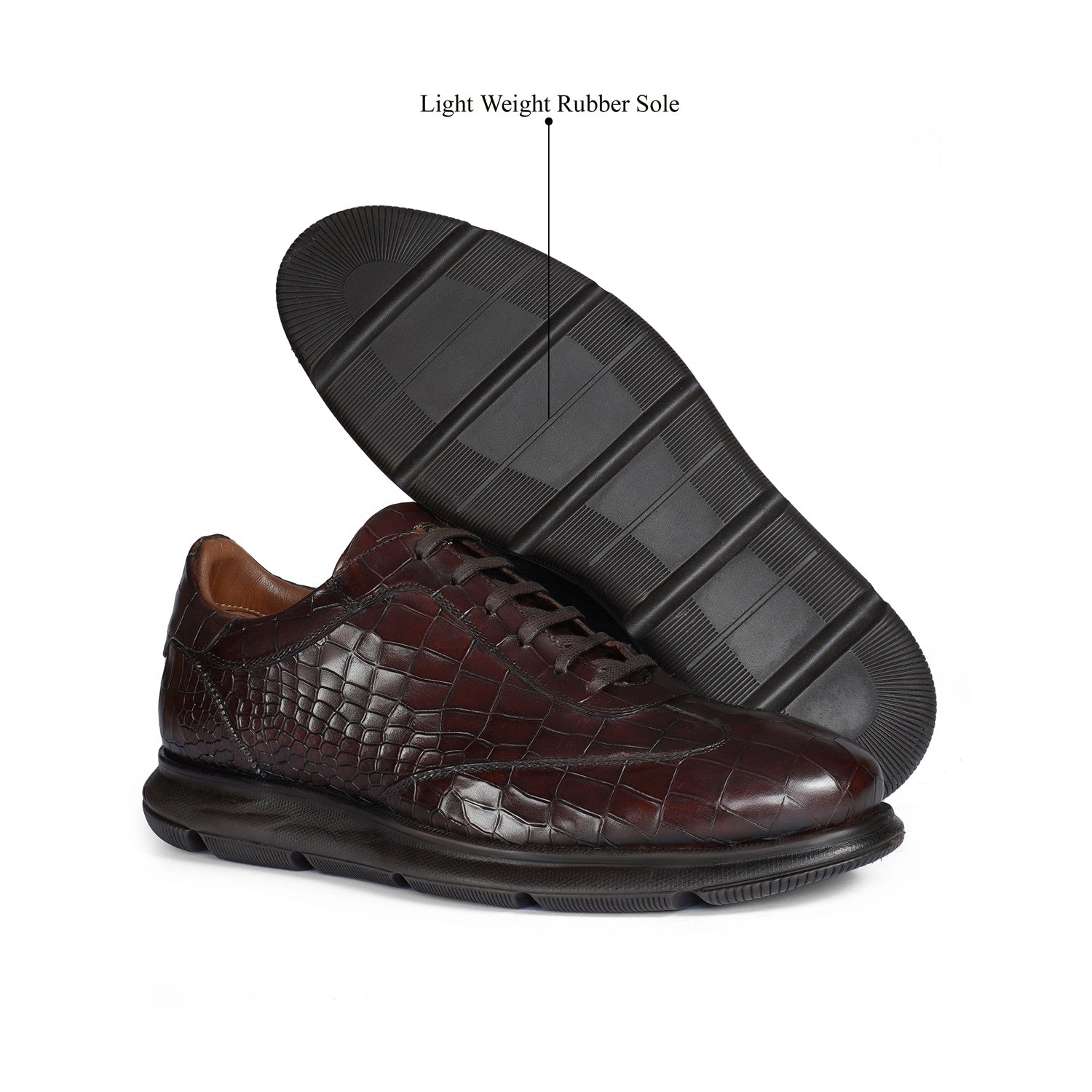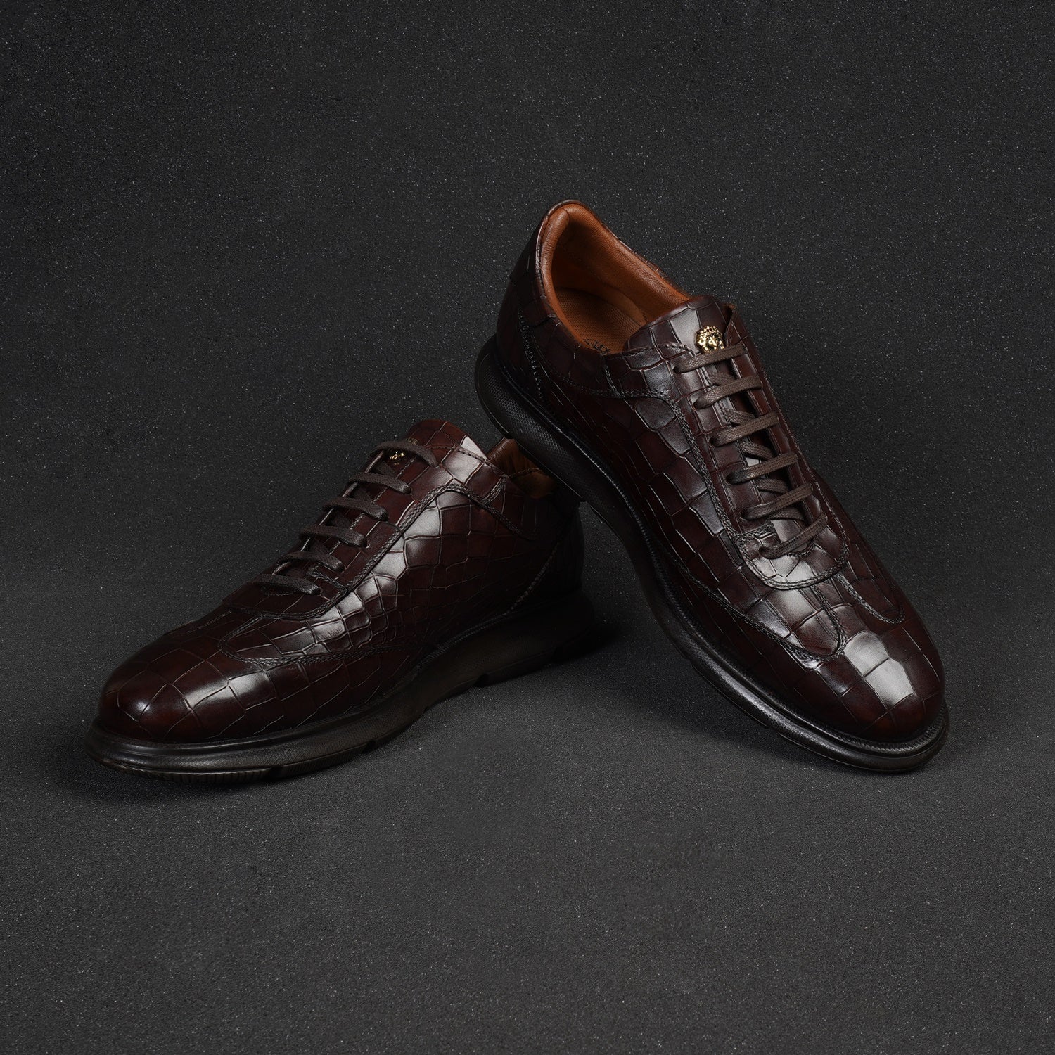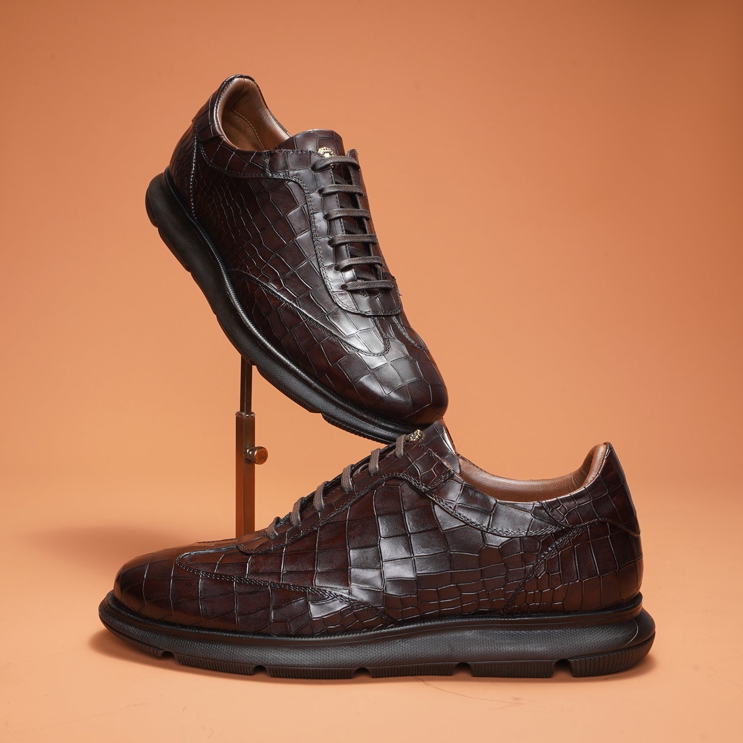 Stitched Toe Light Weight Dark Brown Croco Embossed Sneaker