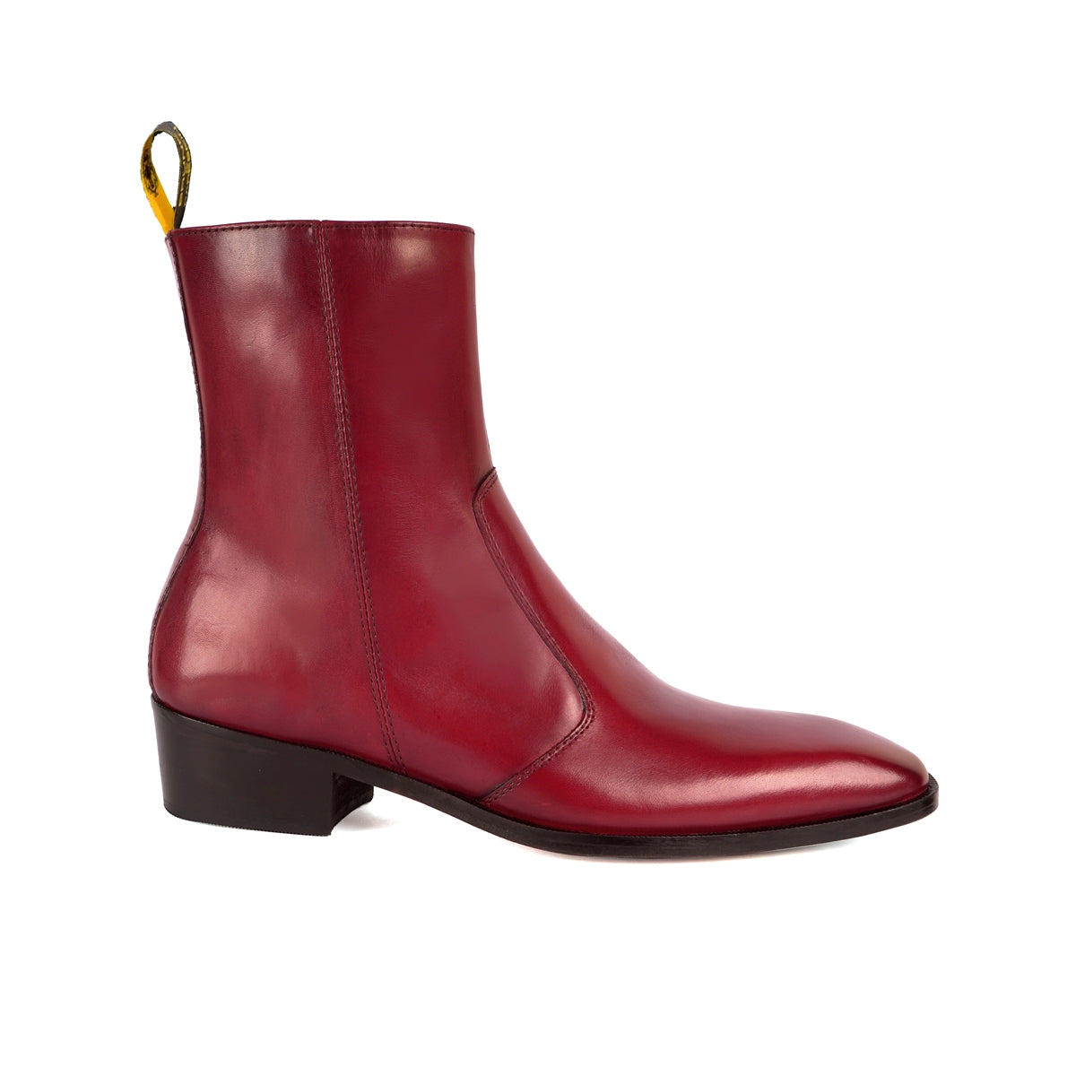 Stitched Wine Men's Leather Formal Boots High Ankle (40MM) Cuban Heel Zipper Closure
