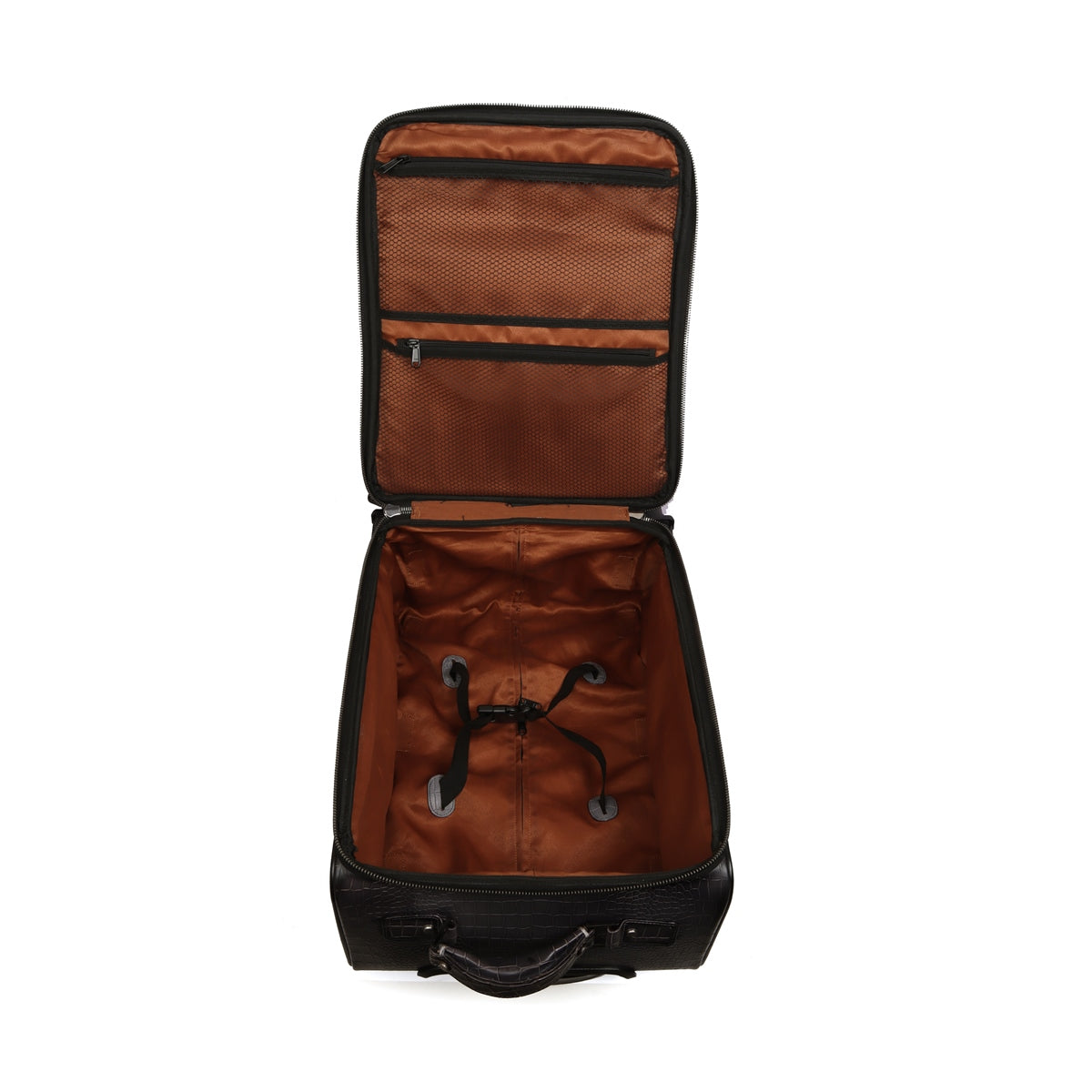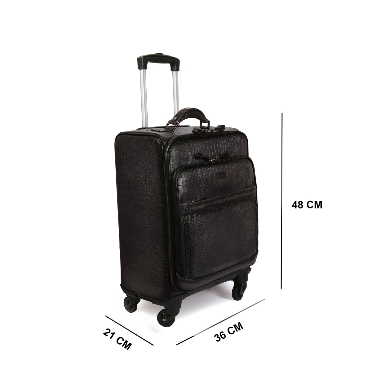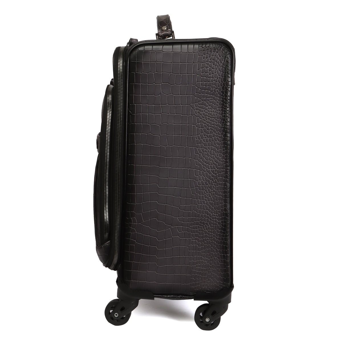 Strolley Quad Wheel Cabin Luggage Smokey Grey Croco Print Leather Bag
