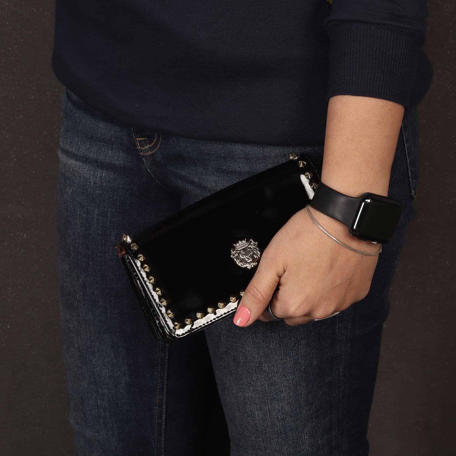 Studded Ladies Clutch/Wallet in Black Patent Leather
