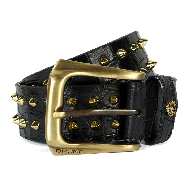 This Deep cut croco textured Blue Hand Crafted Leather Formal belt for men ensures to keep you in comfort all day long. The Stylish Mini lion logo and Slant Shape silver finished buckle enhances its appearance further. The silver arrowhead stud work is so delicate & admirable that only a few of these will be made. This attractive belt ranks high on the latest Formal style to offer you well-deserved popularity.