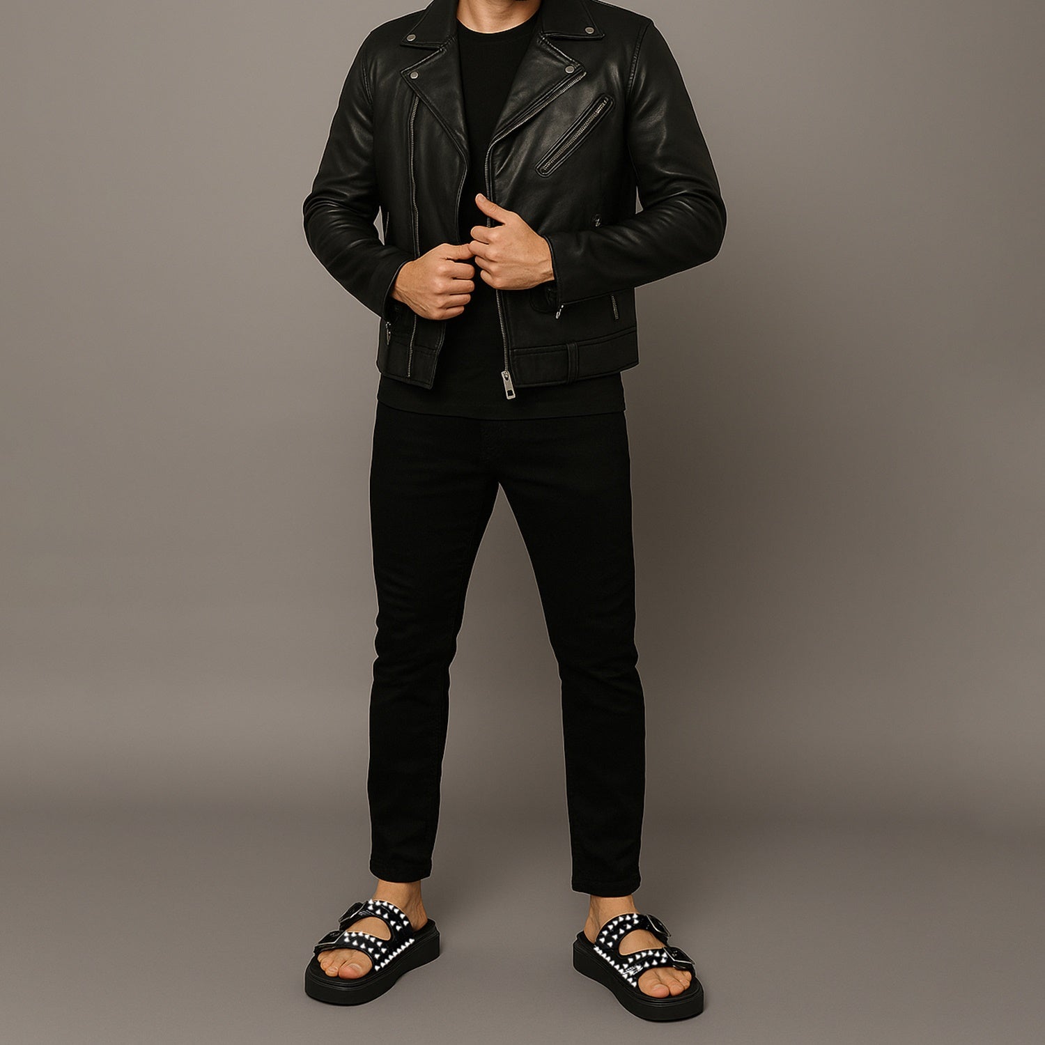 When it comes to Slippers, comfortably is the highest priority. These Cut Croco leather Slide-in Slippers are the luxurious piece of beauty from Brune & Bareskin. These light-weight slippers are a must-have of the season. Deep cut Croco Adjustable buckle strap spells freedom and the casual lifestyle. The stud detailing give a credible look provide the extra convenience to wear it. Black croco Leather slide-in slipper looks lavishing with Brune & Bareskin's signature metal lion logo. The gel injected memory foam base is designed to provide you comfort while walking. We use special layering techniques to keep the base cozy and retain its shape. Croco Adjustable buckled strap endows the extra room for every foot. The wider straps design enhance the elegance further. Anti-Skid Rubber outer sole ensures the perfect walking grip. The ultra-lightweight Lug sole makes it ideal footwear for all-day-long wearability and the thick high lightweight sole complements the comprehensive look. Carry these with Jeans, Shorts, Capri's, and other casual wear to be a style leader.