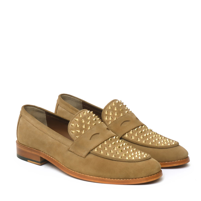 Loafers are a very versatile shoe which can easily be slipped on the foot and be worn casually, or in a more dressy environment. Make your everyday special with these classy men's loafers. Loafers remain the favorite style of shoes, as they are convenient to use and spell minimum fuss. A modern twist on the classic penny loafers shoe that combines soft and supple leather, choose to wear this pair of handcrafted leather shoes by BRUNE & BARESKIN. Wine Brush off Patent leather loafer with Golden studs detailing on Apron Toe makes this loafer the first choice of every Fashionista. Golden studs on Patent leather upper provide a unique swanky look. This Shoe is entirely handcrafted by our expertise. Featuring Slip-On closure which helps to wear this vogue beauty effortlessly. Extra padded insole gives that extra cushiony comfort which helps to wear this for long. When you choose to wear branded, shoes by BRUNE & BARESKIN, you are sure to get more than a few glances coming your way. The company "Brune & Bareskin" complements the fashion statement in a unique way to help customers cherry-pick from the collection & feel better & look better. You can get it made in your favorite color with our Bespoke services.
