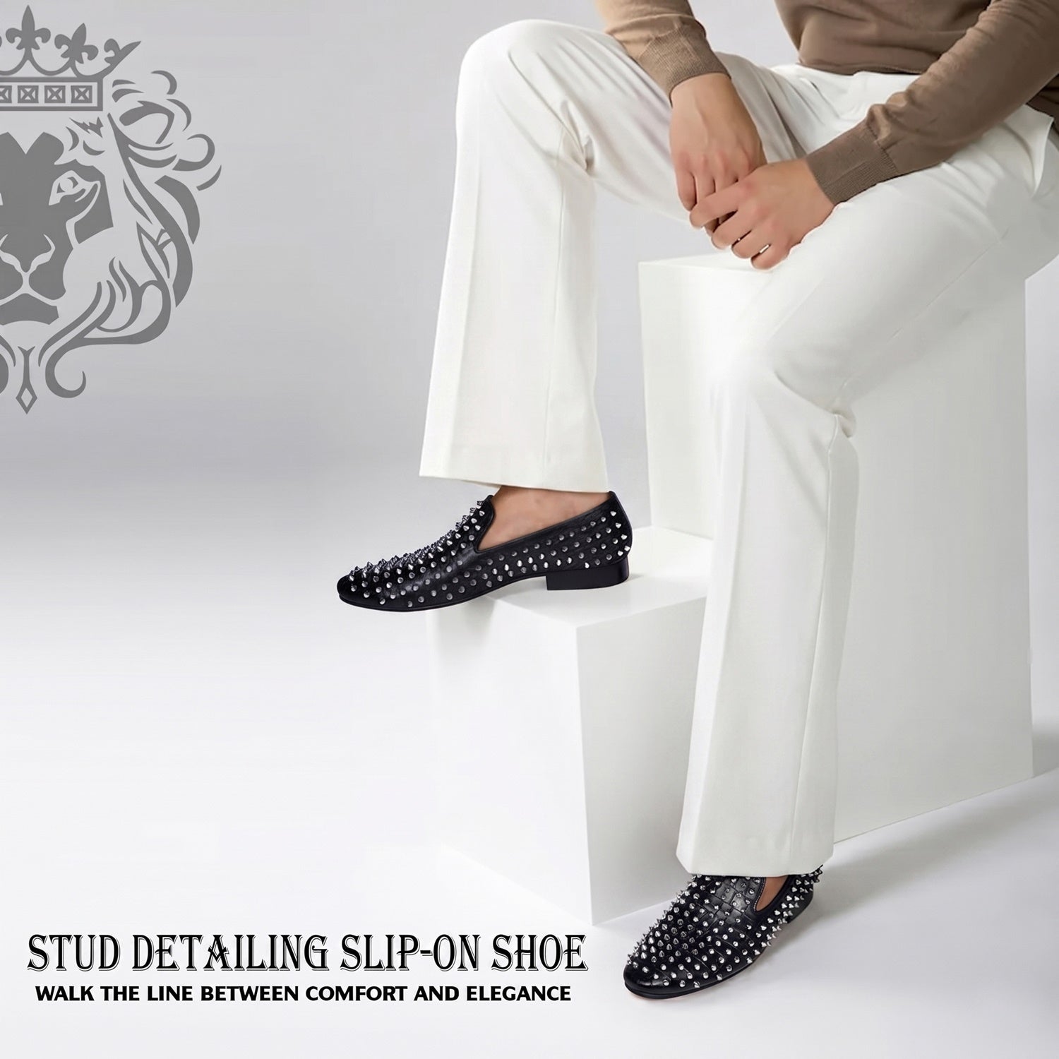 Expertly crafted with precision and style, these Studs Detailing Croco Embossed Black Slip-On Shoes are the perfect addition to any party wear collection. The croco embossed leather and shiny nickel finished silver arrowhead studs offer a premium quality look, while the extra padded insole and rubberized heeled outsole provide maximum comfort for all-day wear. Elevate your shoe game with these stunning shoes.