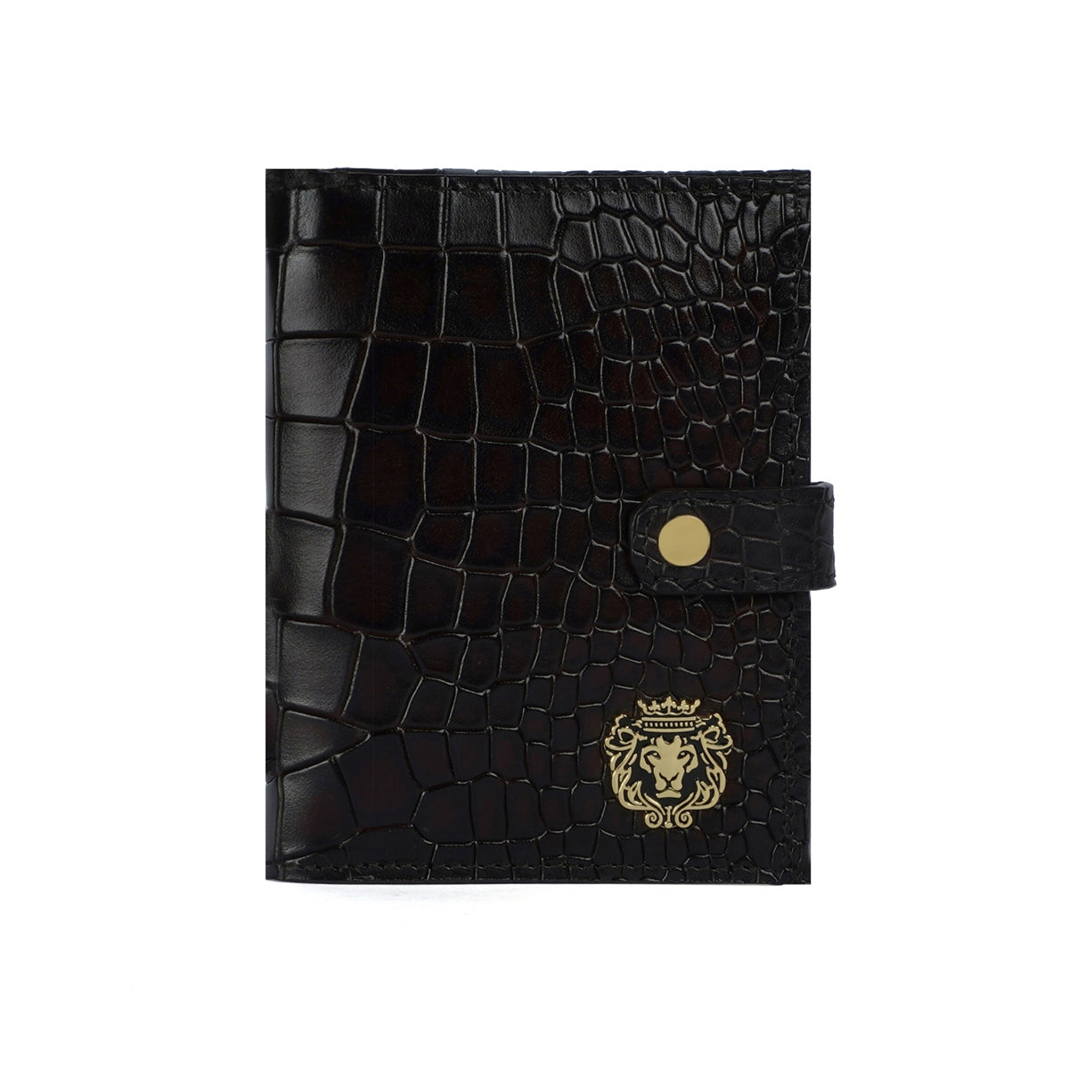 Stylish Deep Cut Croco Smokey Dark Brown Leather Button Closure Passport Holder By Brune & Bareskin