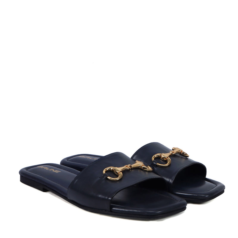 Stylish Horse-Bit Detail Genuine Beige Leather Slide In Slipper