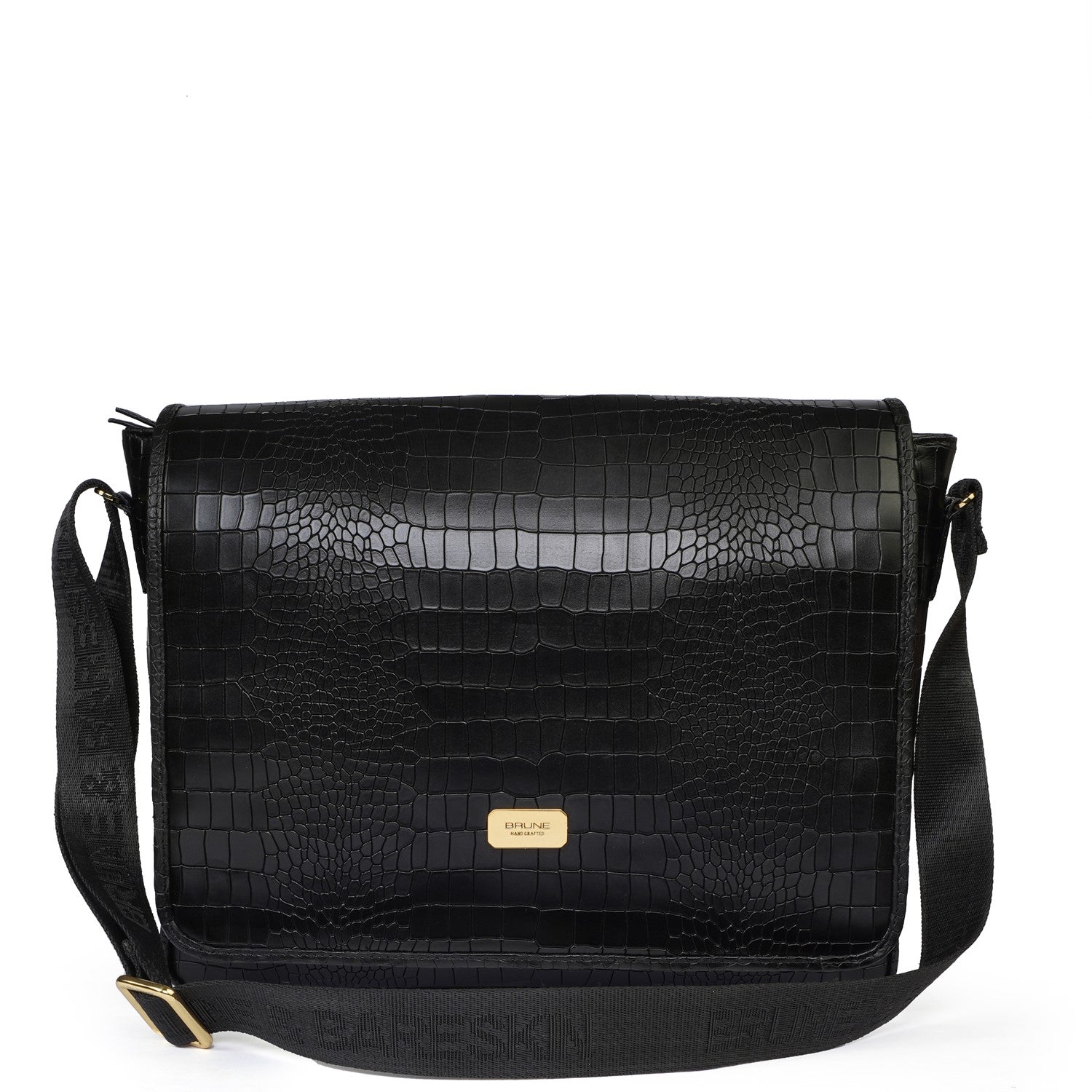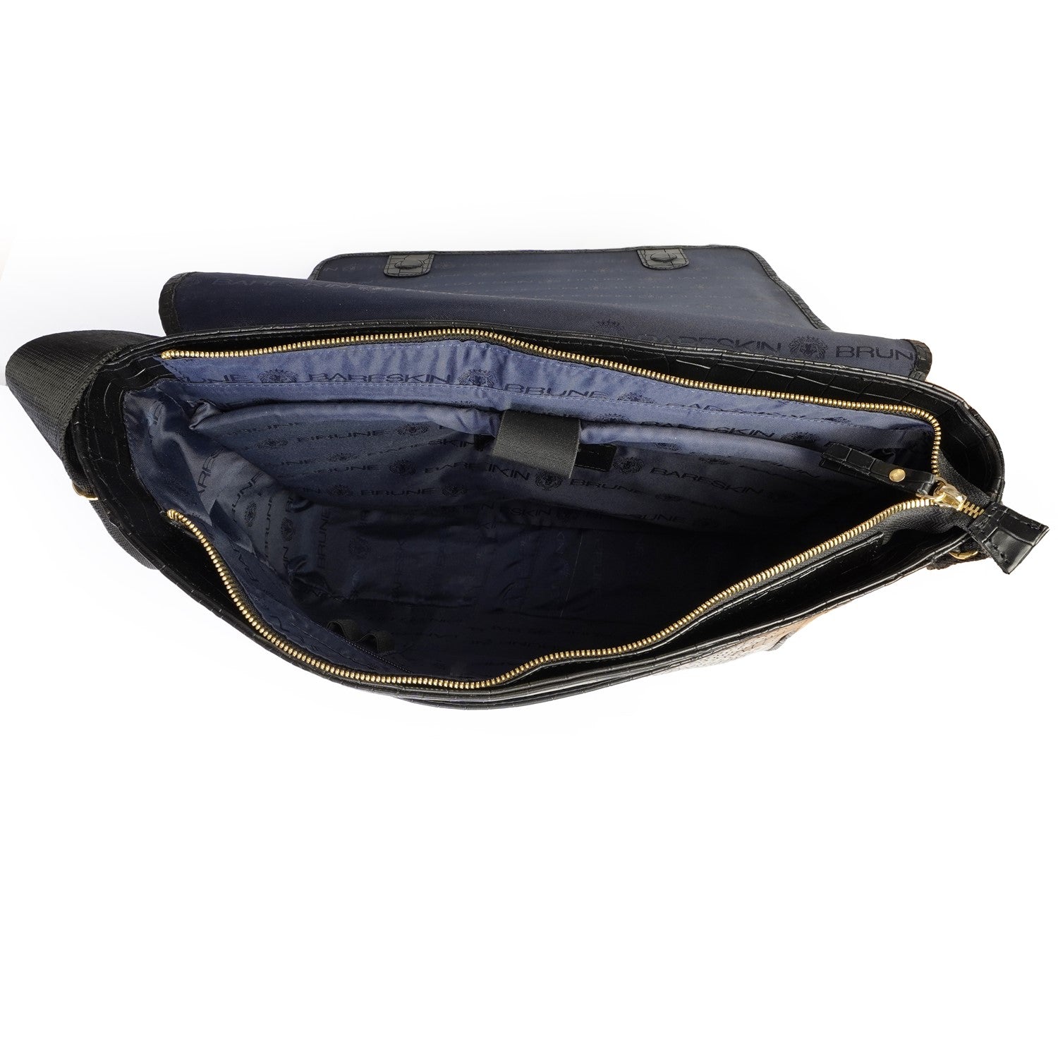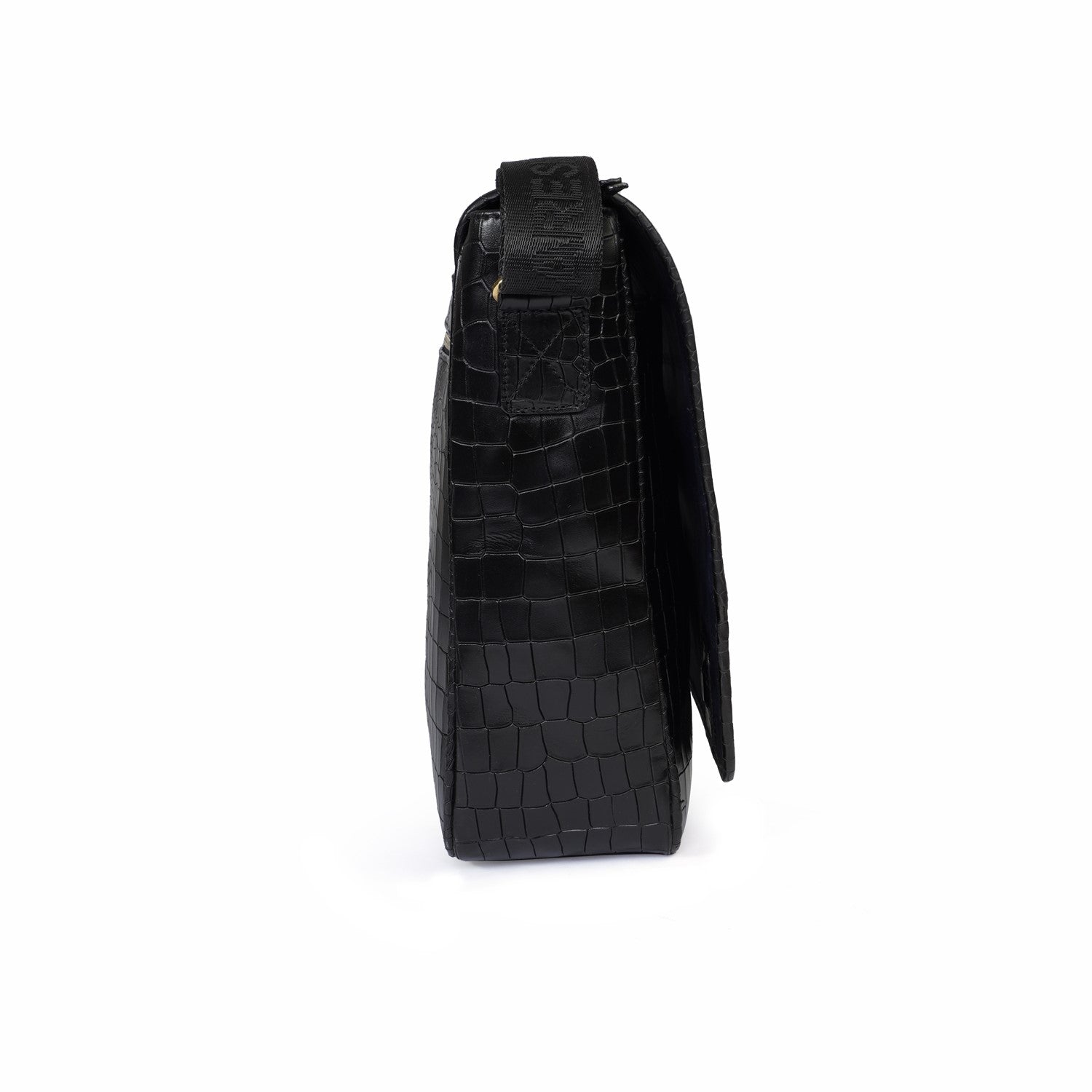 Stylish Premium Exclusive Hand-Painted Black Leather Flap-Over With Golden Branding Plate Finish Messenger Bag By Brune & Bareskin