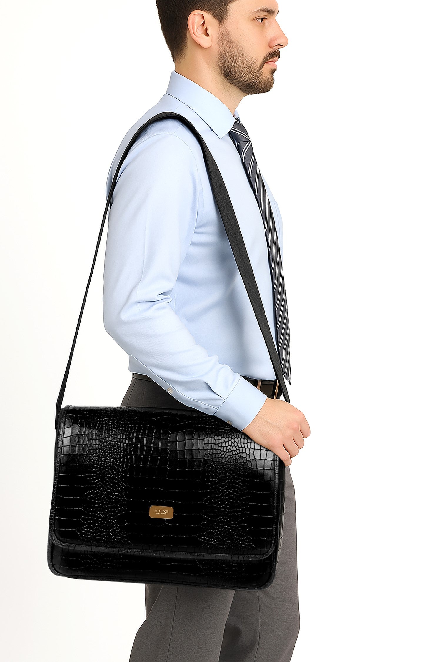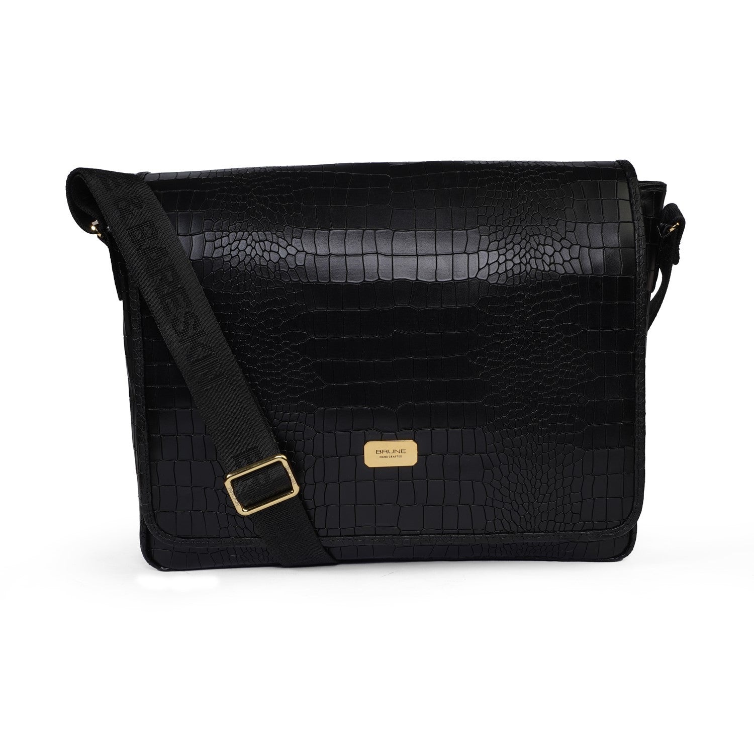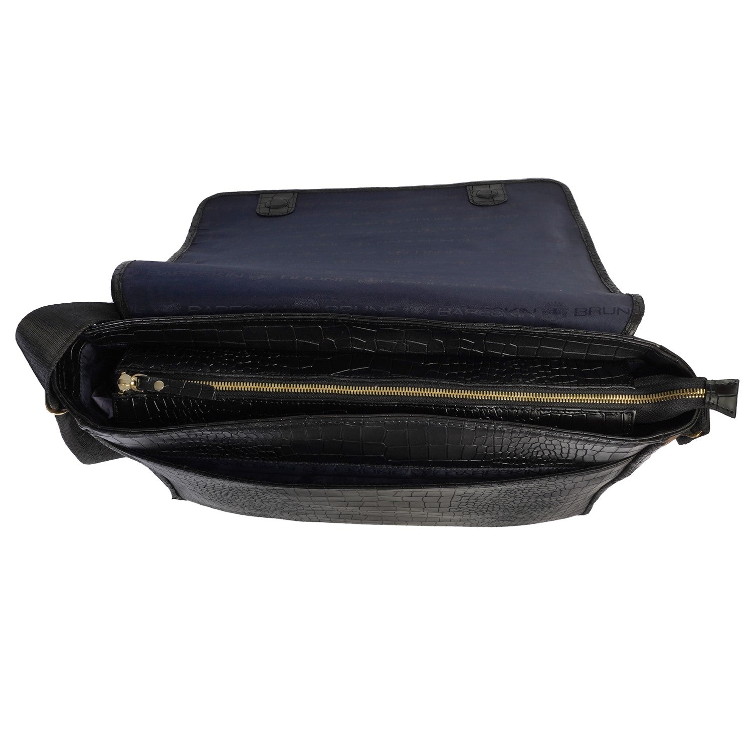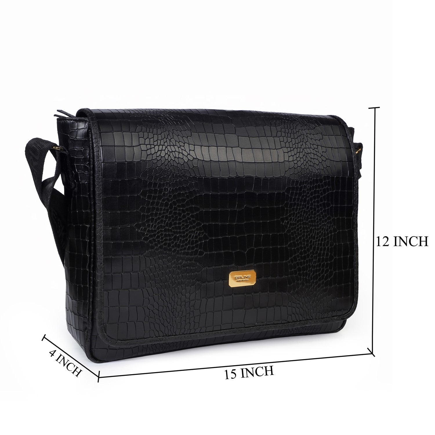 Get the style and convenience at the same time with this Brune & Bareskin laptop bag. The deep cut croco textured leather provides the durability which is hard to find anywhere else. Just for you We believe in providing satisfaction to our customers with our handcrafted products. Easily adjustable/removable strap to make it the best option for all the folks out there. A golden zip compartment for holding your paper works safely with golden brune branding plate. This smokey Black bag has beautifully inclined organizer in the main compartment. Extra-large Pockets on front and back to store more. Specially padded laptop sleeve to protect your laptop from any mishappening rank up your style statement with the precisely handcrafted artifact. You can get it customized in your favorite color shade with Name Initials with our bespoke services.
