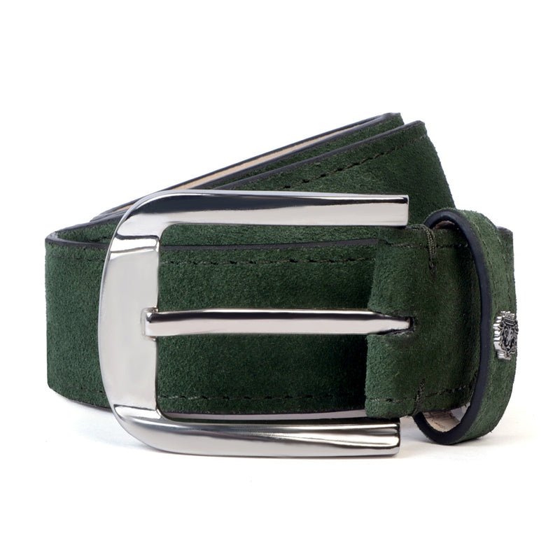 Look sharp and stay fashionable with this hand crafted dark brown suede leather Men's Belt. This Green Hand Crafted Suede Leather Formal belt for men ensures to keep you in comfort all day long. The Stylish Mini lion logo and Silver finished buckle closure enhances its appearance further. This attractive belt ranks high on the latest Formal style to offer you a well deserved popularity. The renowned brand of Brune & Bareskin is widely trusted by men for their wide range of premium quality leather belts that rank high on durability and style factors.