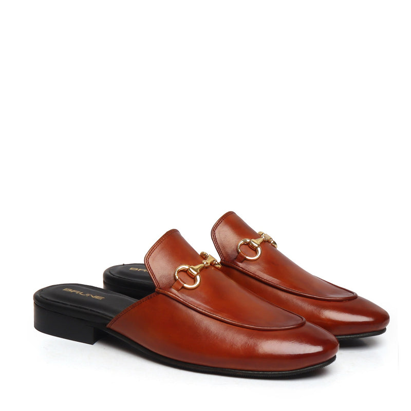 Set for the summer, these casual formal mules are a must-have for your wardrobe. Crafted from genuine black leather, the mules feature a back opening and a horse-bit buckle that adds a hint of tradition and style. To keep up with the warm season, the shoes have a light weight design, as well as an added furry element that brings an elegant and classy feel. Step into luxury with these summer special mules.