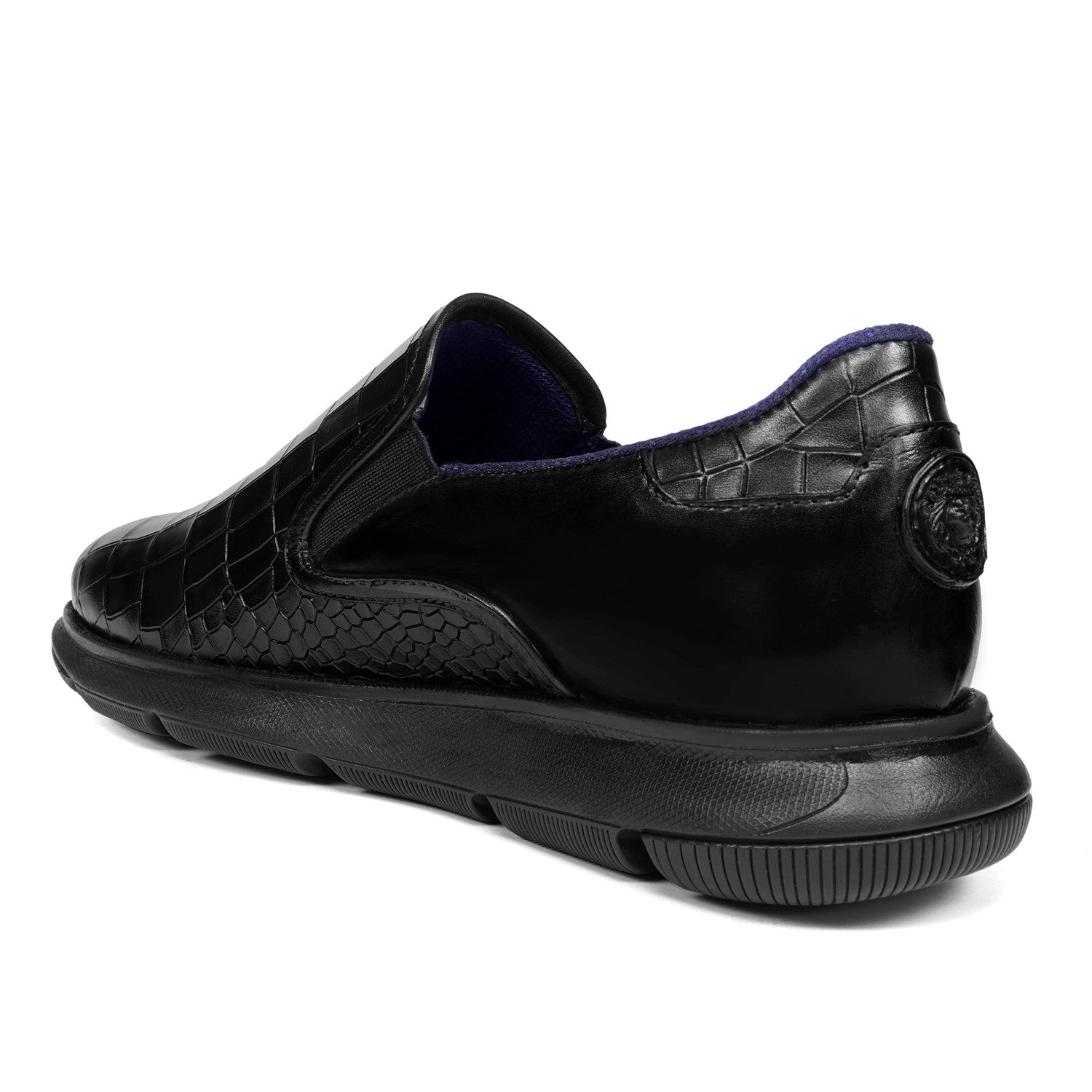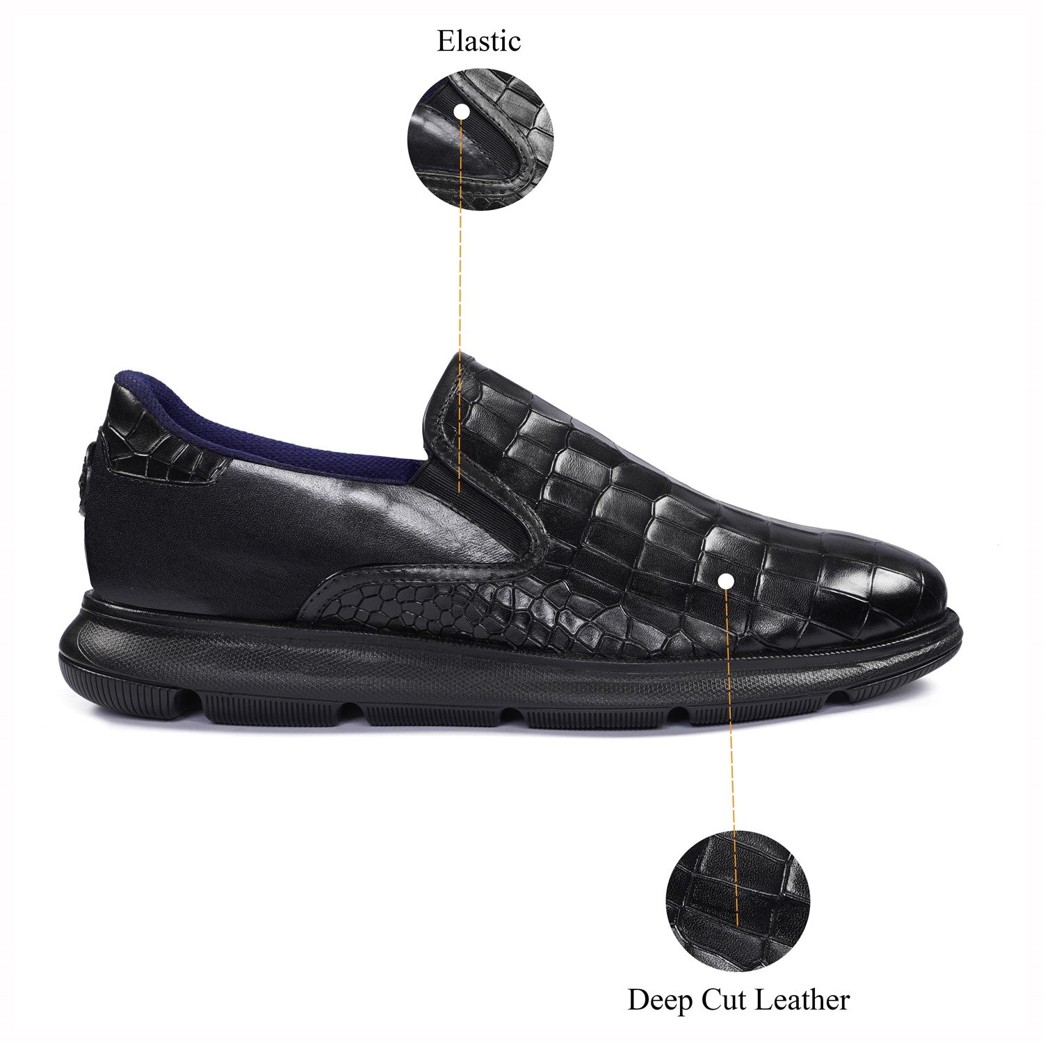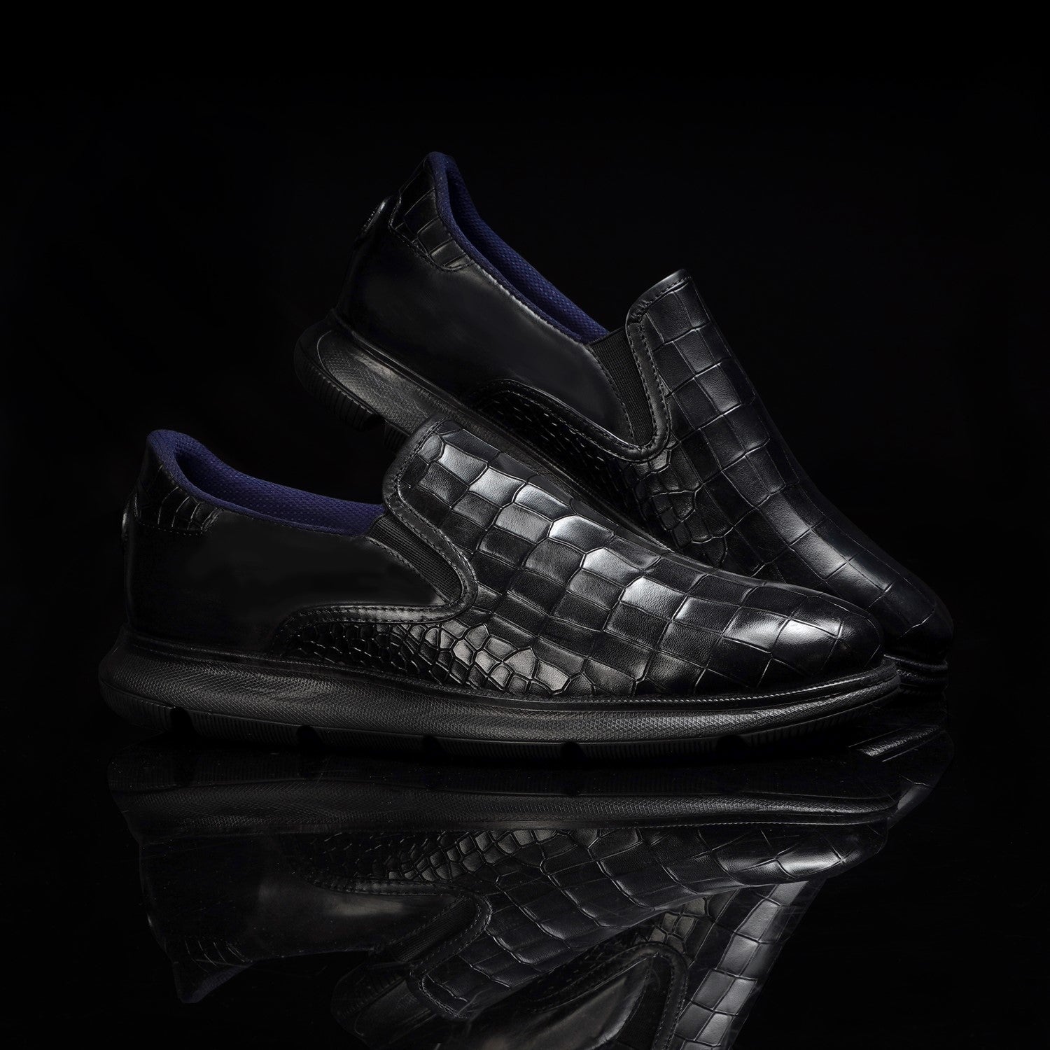 Super Comfy Extra Light Weight Deep Cut Croco Black Sneakers