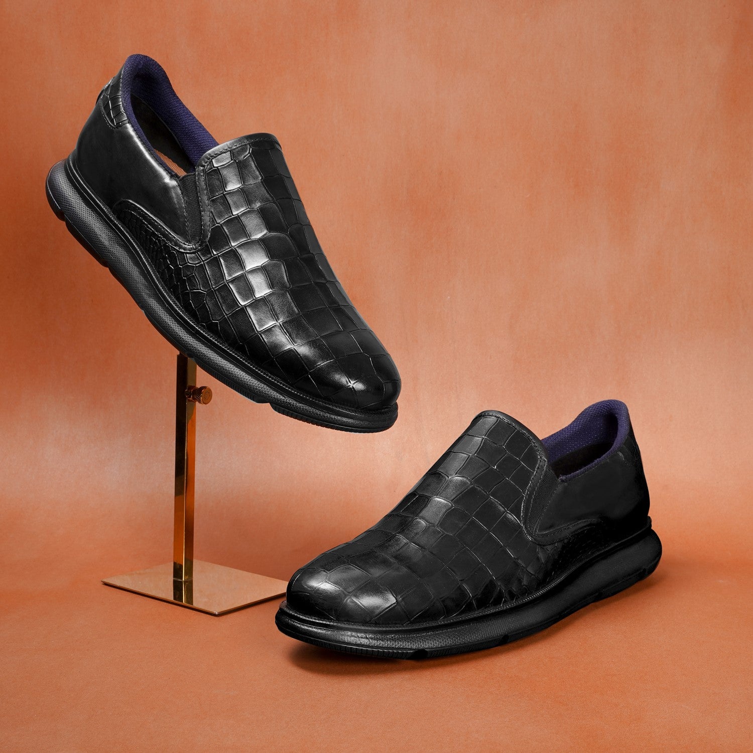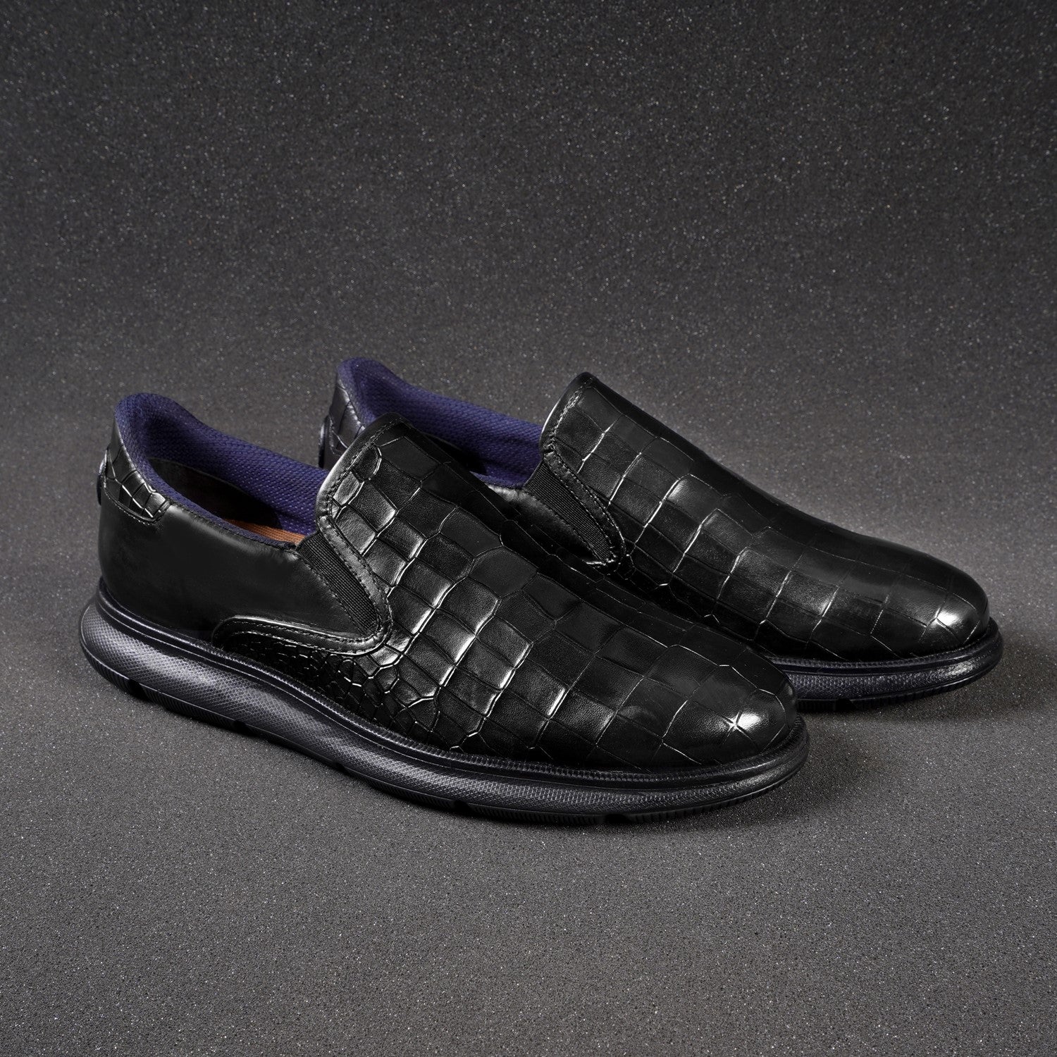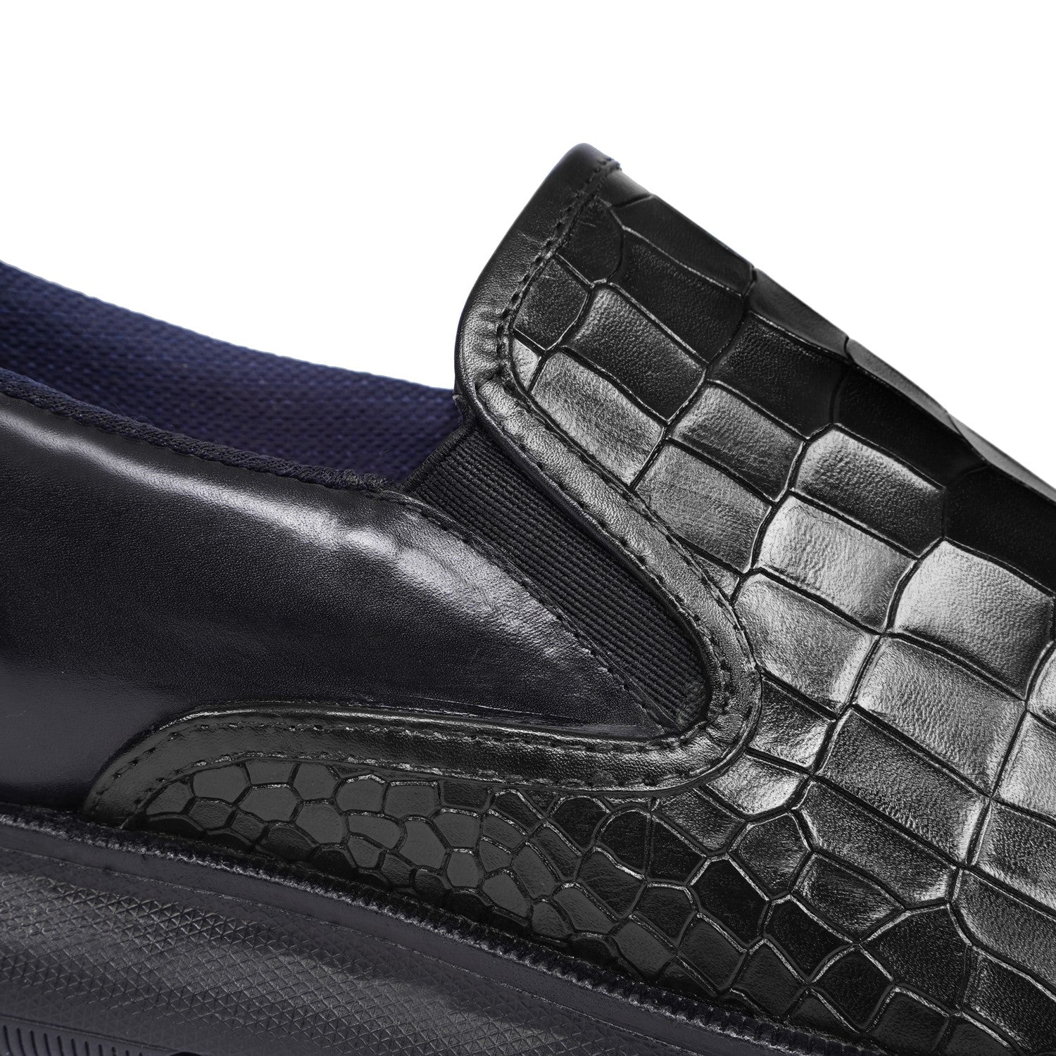 Super Comfy Extra Light Weight Deep Cut Croco Black Sneakers