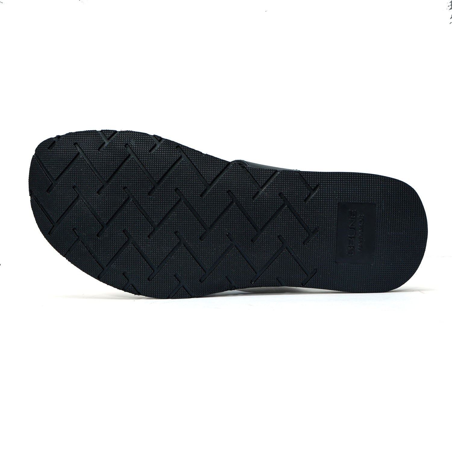 T-Strap Black Slide-in Slipper with Trademark Buckle