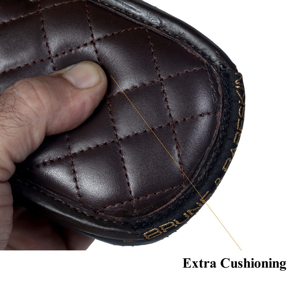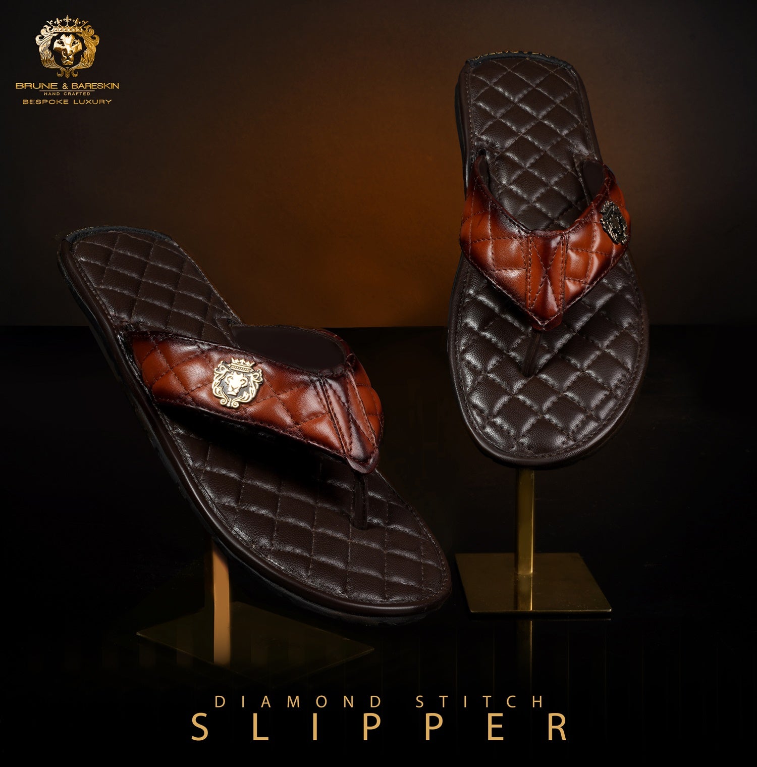 This super comfy slipper is made to provide style and comfort. The slipper has a three-point throng construction with a quilted diamond stitched pattern on the base and a strap with extra cushioning. The contrasting strap and base look amazing. The wide strap provides a more secure and comfortable fit. It has memory foam in the base which helps to retain its quilted design. You can further customize it for a matching look with Jeans, Shorts, Capris, and other casual wear. The Brune & Bareskin Signature Lion logo on quilted strap enhances the elegance further. Anti-Skid Rubber outer sole ensures the perfect walking grip.