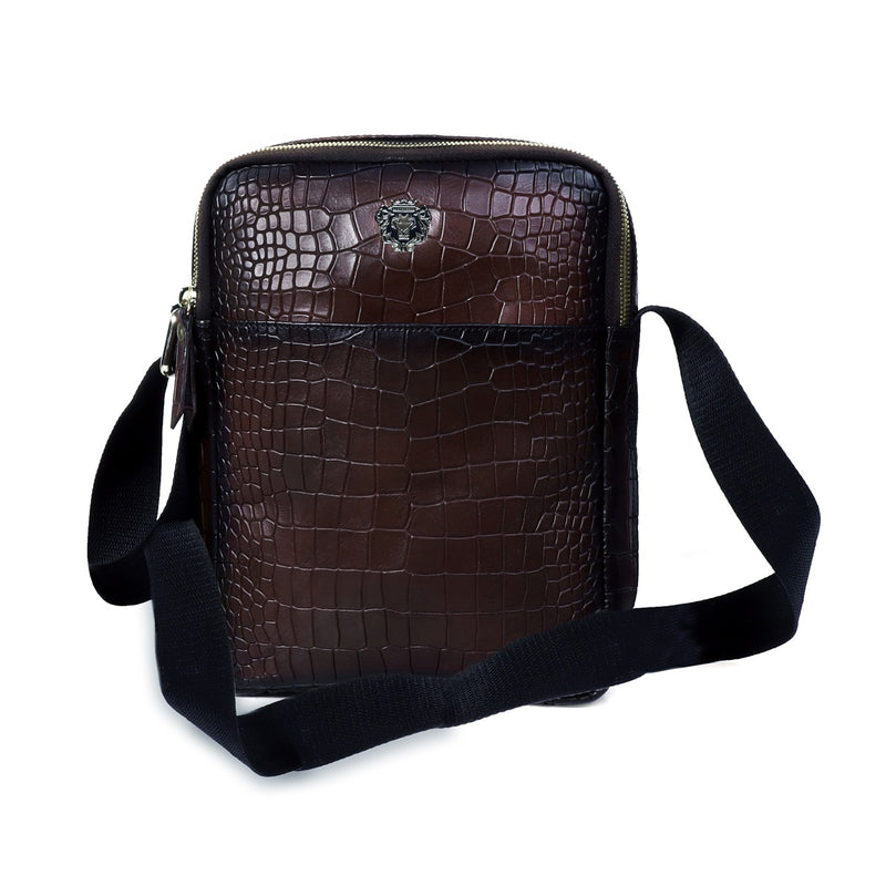 This modern yet classy cross-body bag is a must have especially for the travelers out there. This stylish Tan Cross-body Bag from the prestigious Brune & Bareskin Brand is crafted from luxuriously textured croco embossed leather. Designed for convenience and comfort, the bag features an adjustable strap for ease of movement and zip pockets to securely store your essentials like your phone, glasses, watch, and card holder wallet. The signature metal lion logo is a distinct hallmark of quality and refinement.