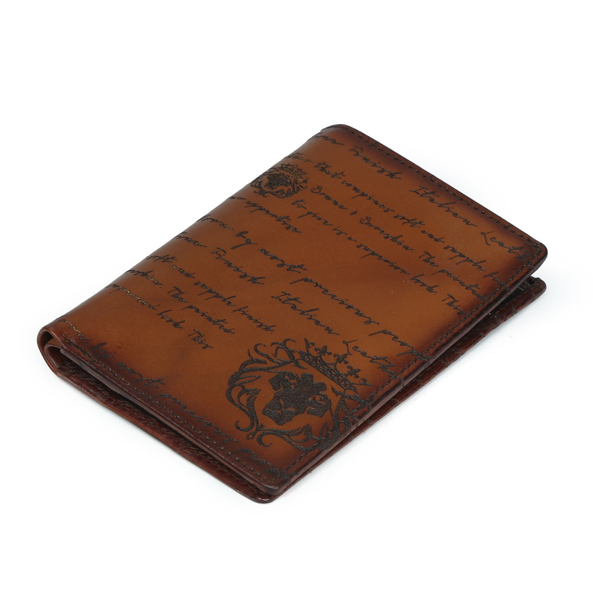 Traveling accessories have always been so important for us, it needs to be classy as well as durable too. The contrasting laser lion dignified the darker shade of Tan leather perfectly on the Passport Holder. This season, this iconic Maison line is enhanced by the emblematic Brune & Bareskin signature Logo: the Scritto motif, now available on the upper of the Cursive models. Tan Laser engraving Leather Passport Holder looks lavishing and Brune & Bareskin's signature lion logo. Easy to carry anywhere with its safety features. The hand-stitched border provides more rigidity. You can get it customized in your favorite color shade with Name Initials with our bespoke services.