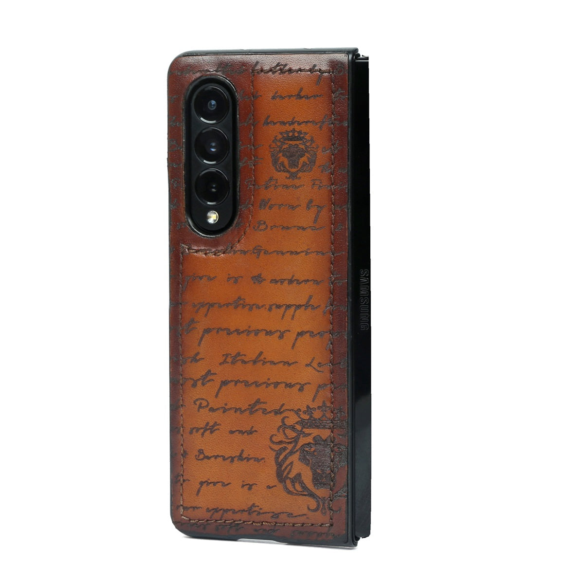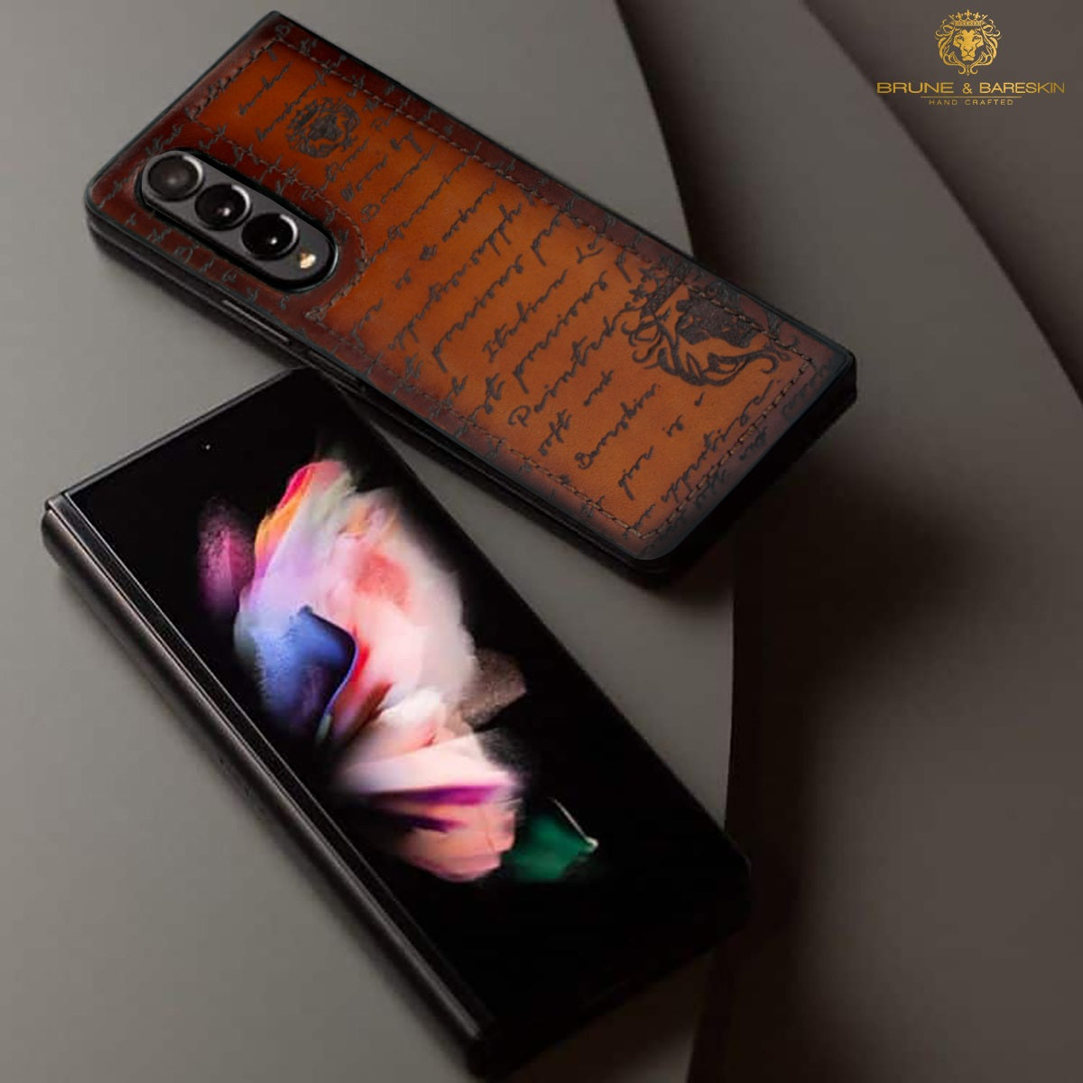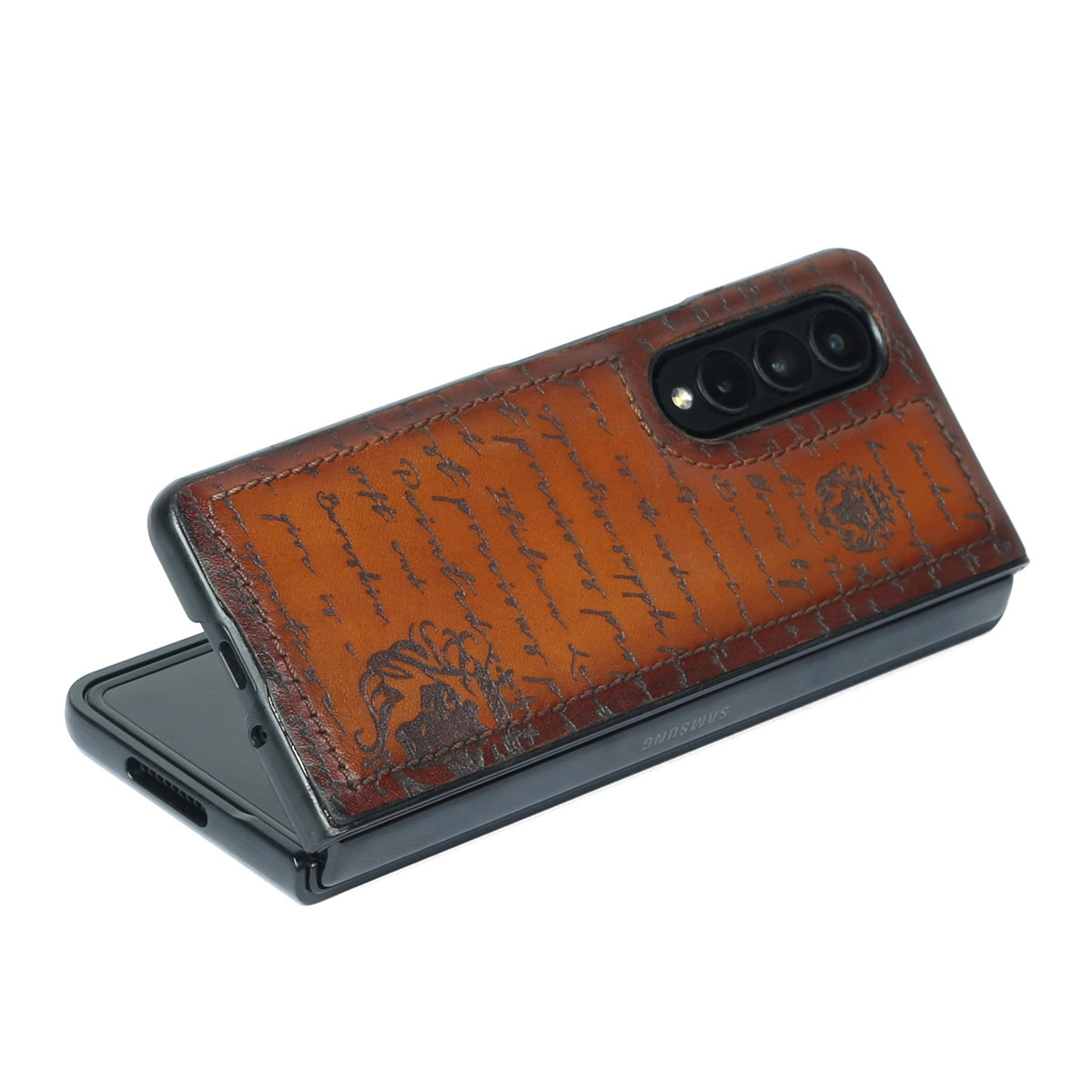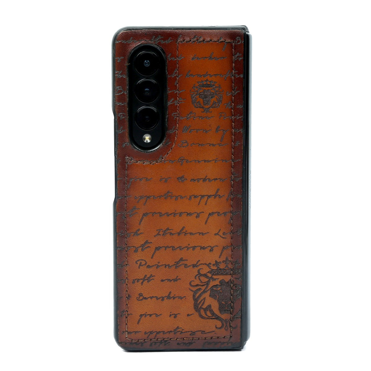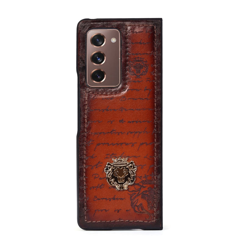 Tan Darker Scritto Laser Lion Leather Samsung Galaxy Fold Mobile Cover by Brune & Bareskin