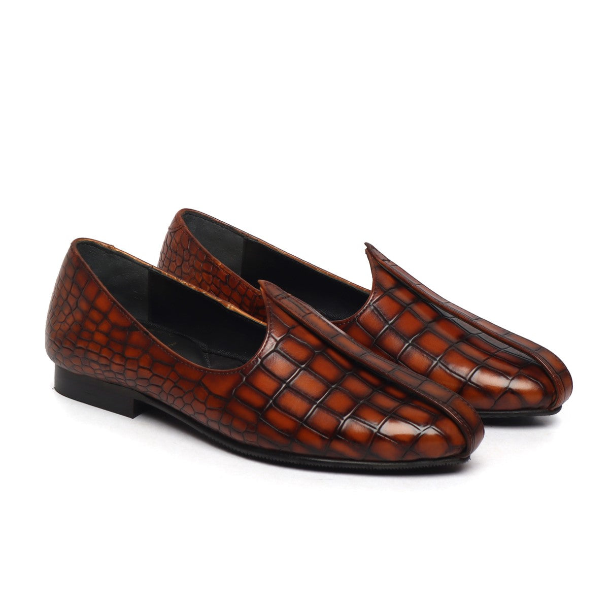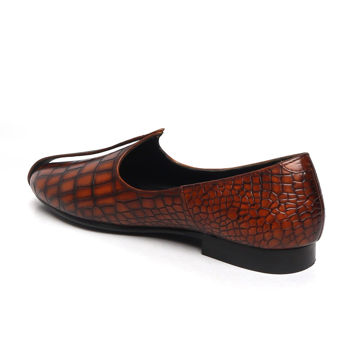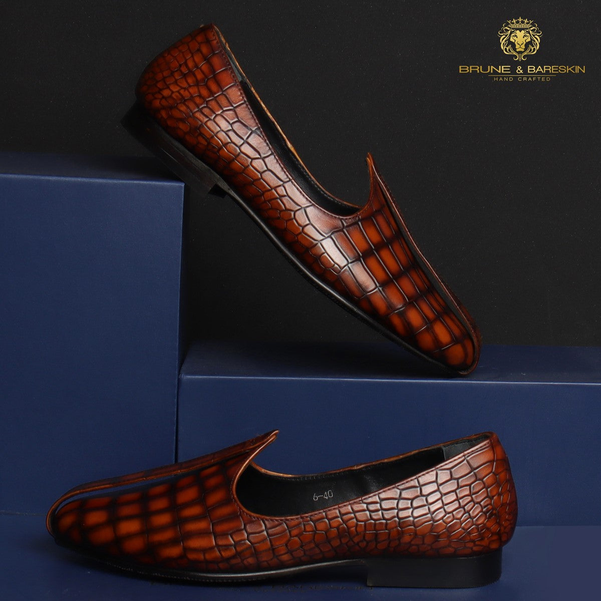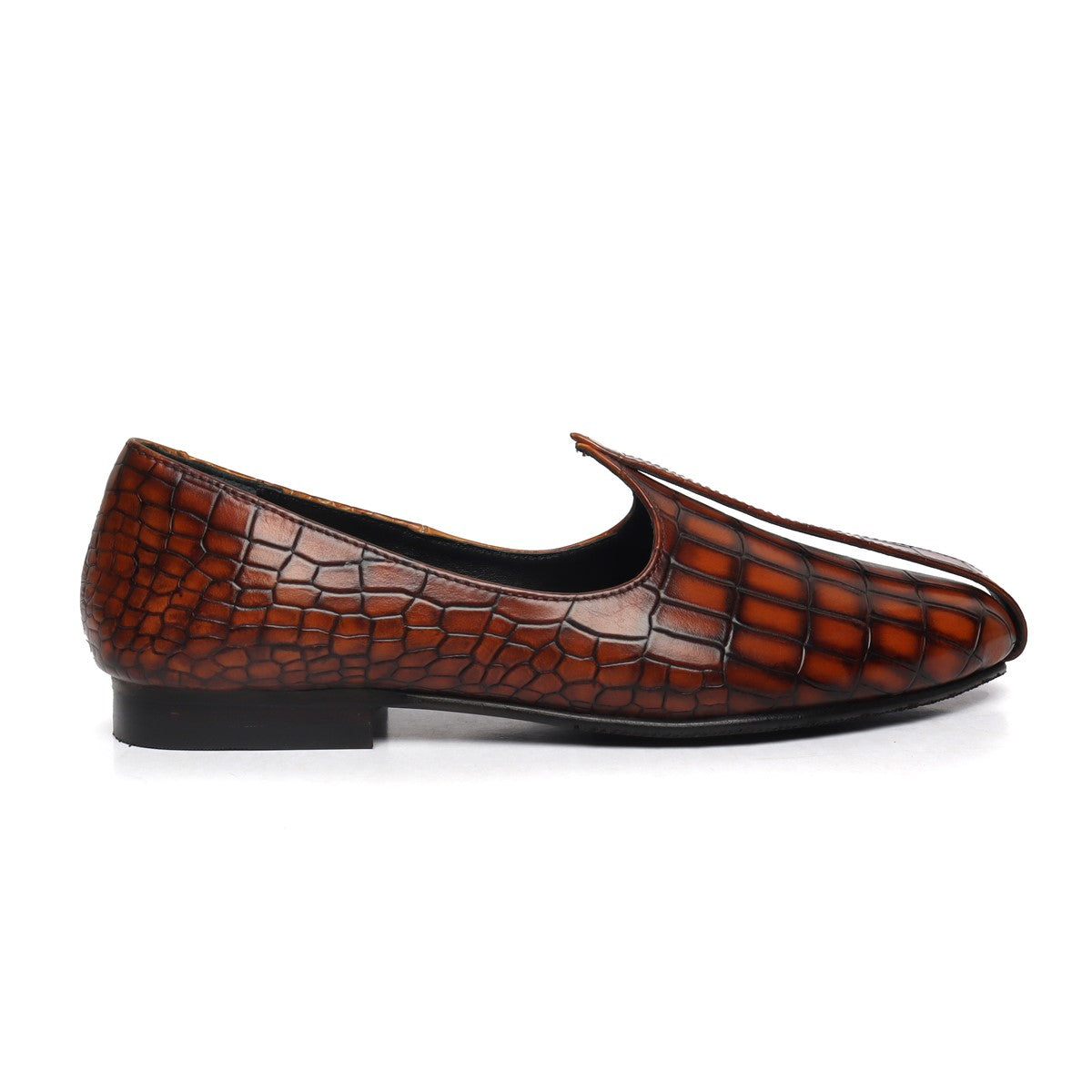 Tan Deep Cut Croco Leather With Darker Cuts Jalsa Jutti by Brune & Bareskin