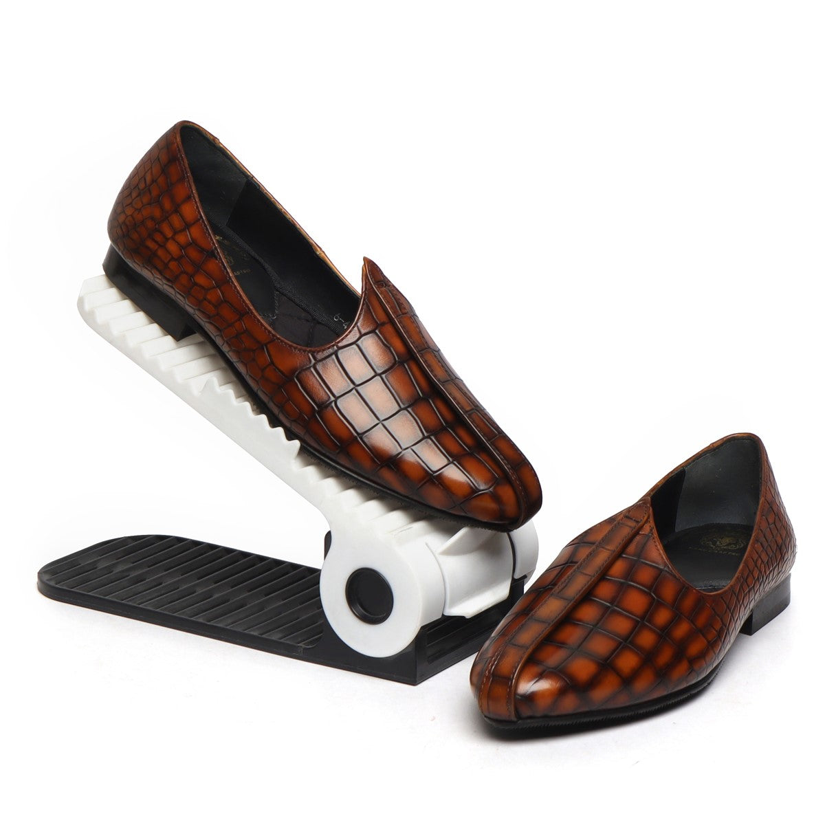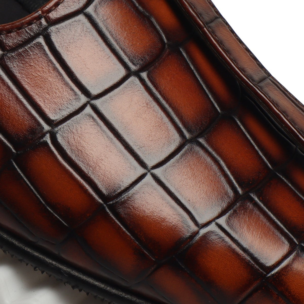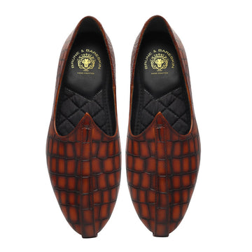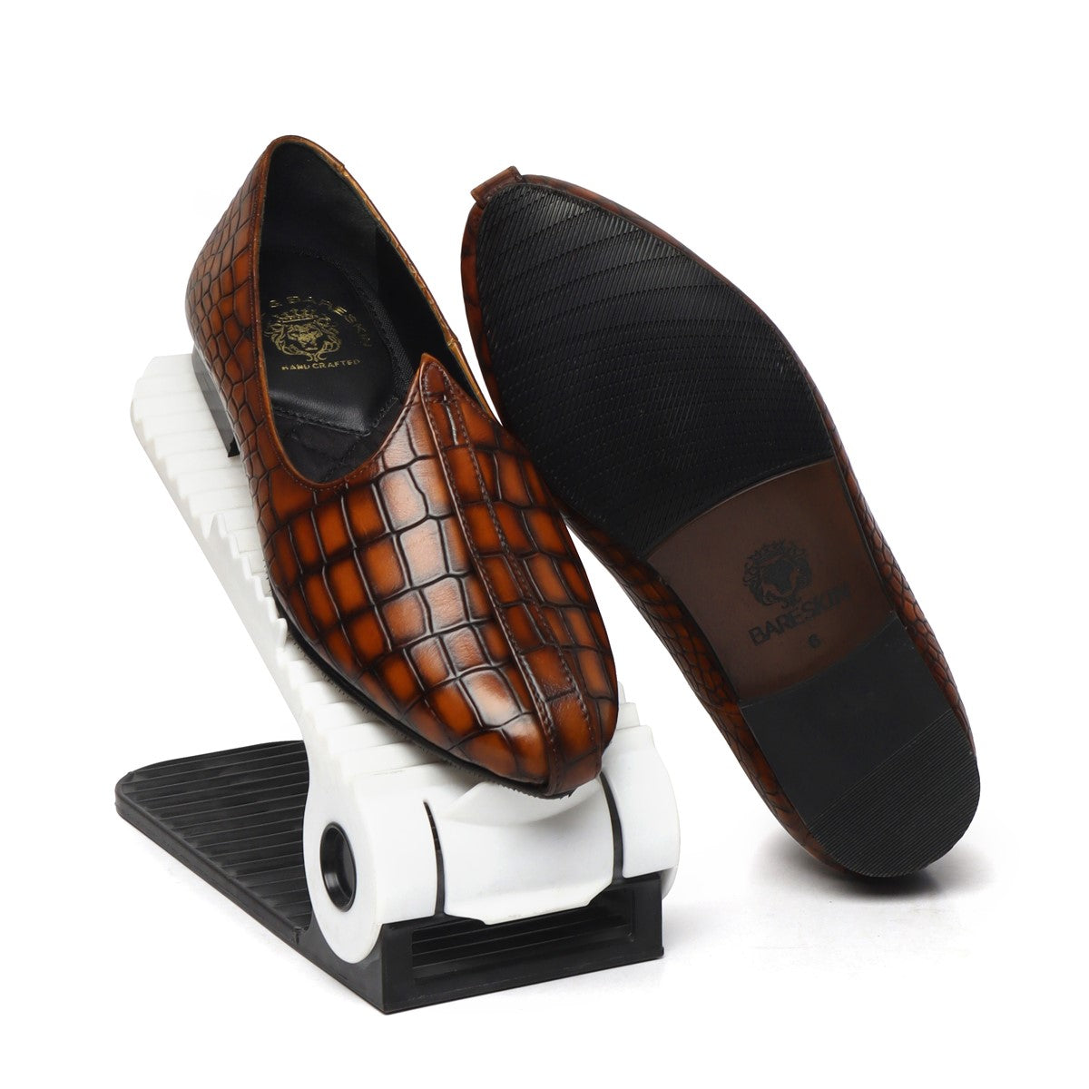 Tan Deep Cut Croco Leather With Darker Cuts Jalsa Jutti by Brune & Bareskin