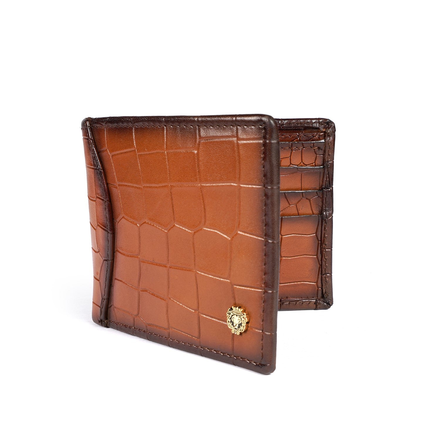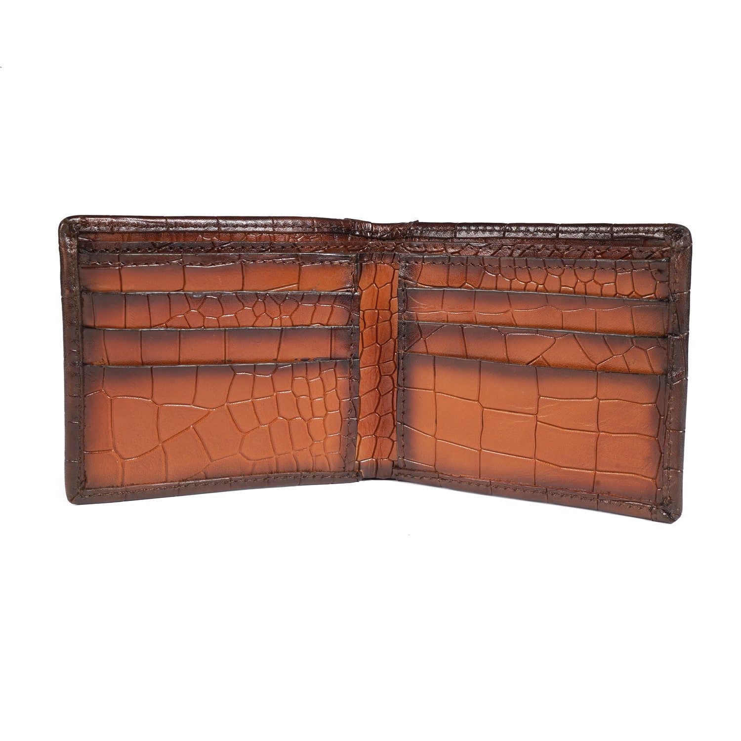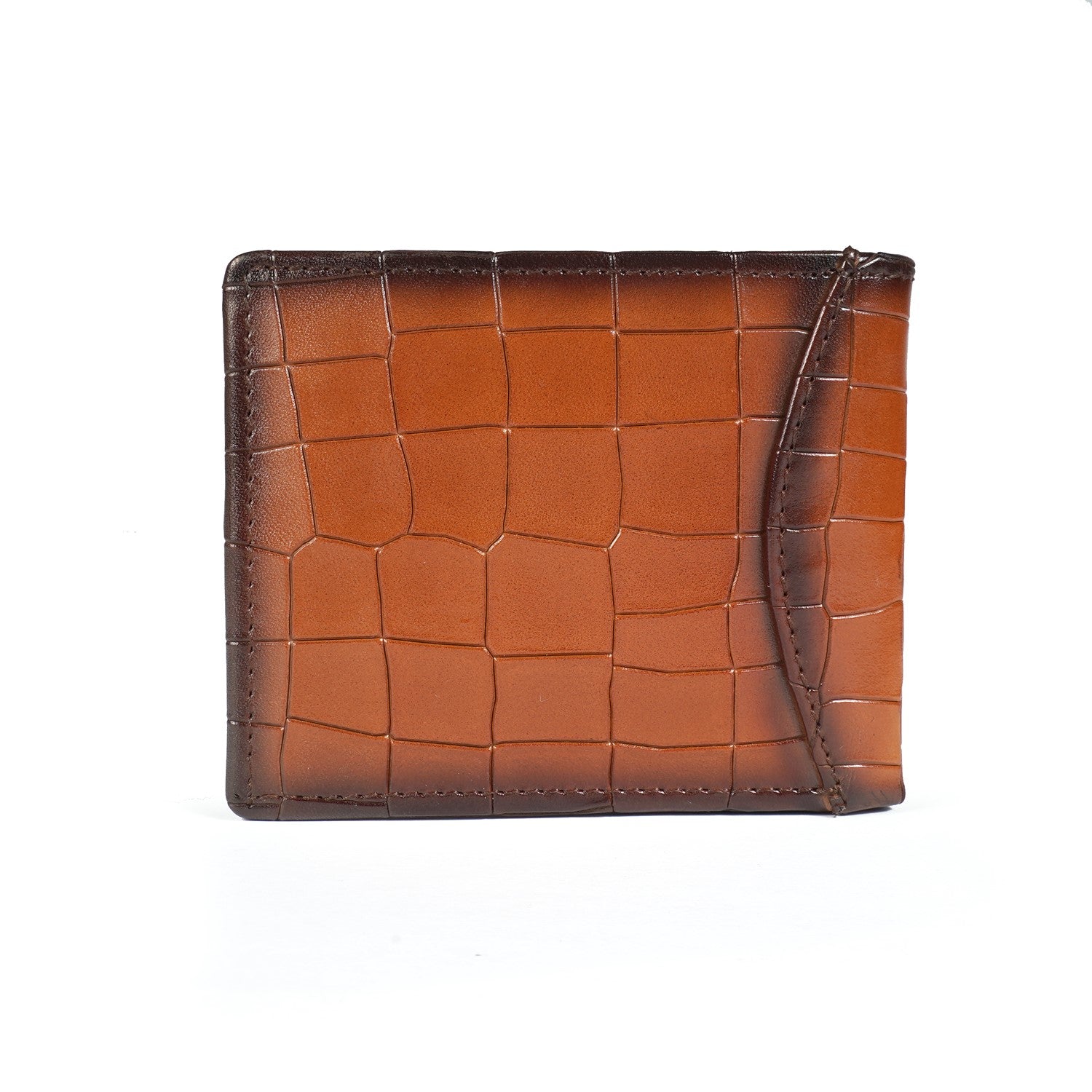 Tan Deep Cut Croco Leather Wallet
