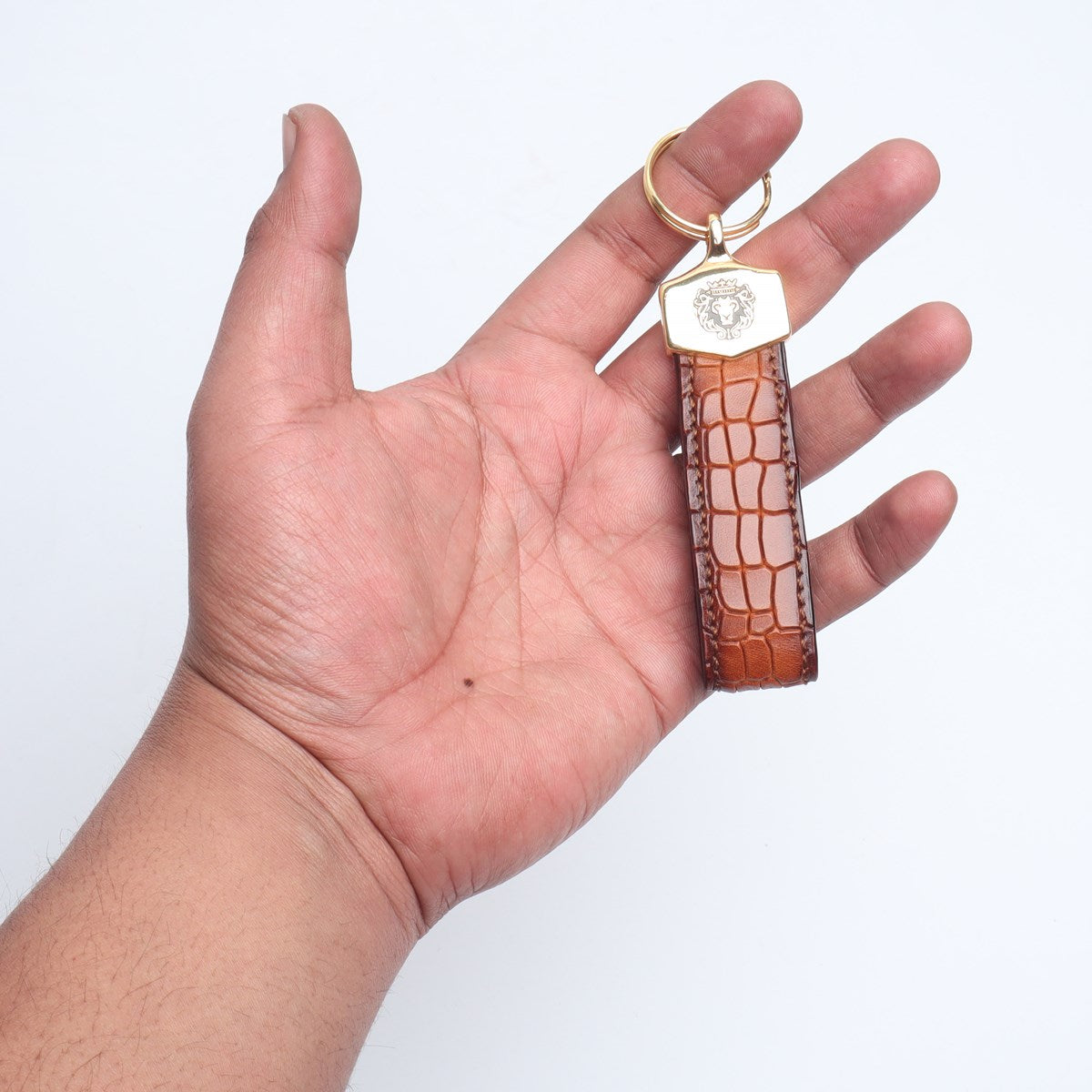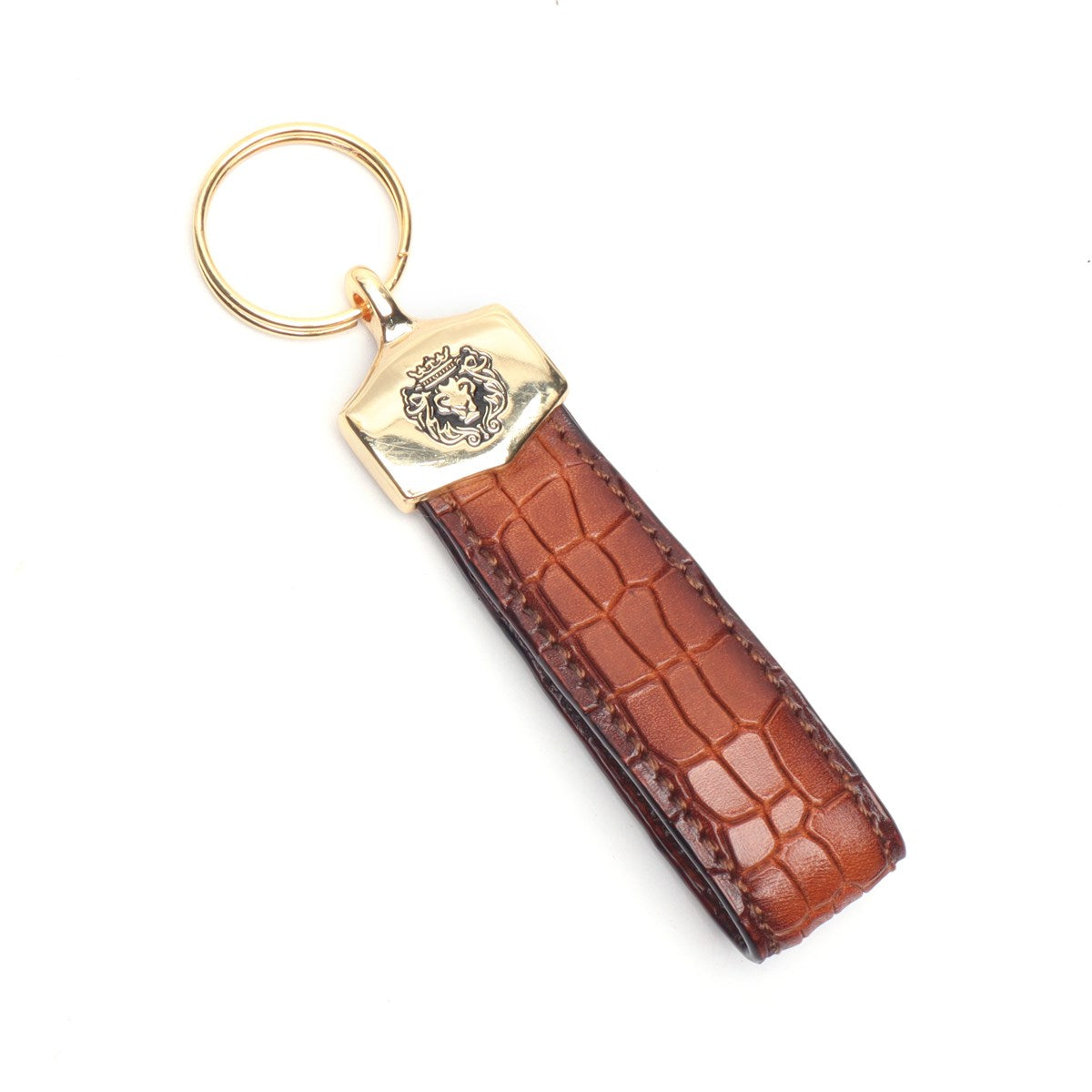 Tan Deep Cut Croco Textured Leather Elegant Brune & Bareskin Keychain
