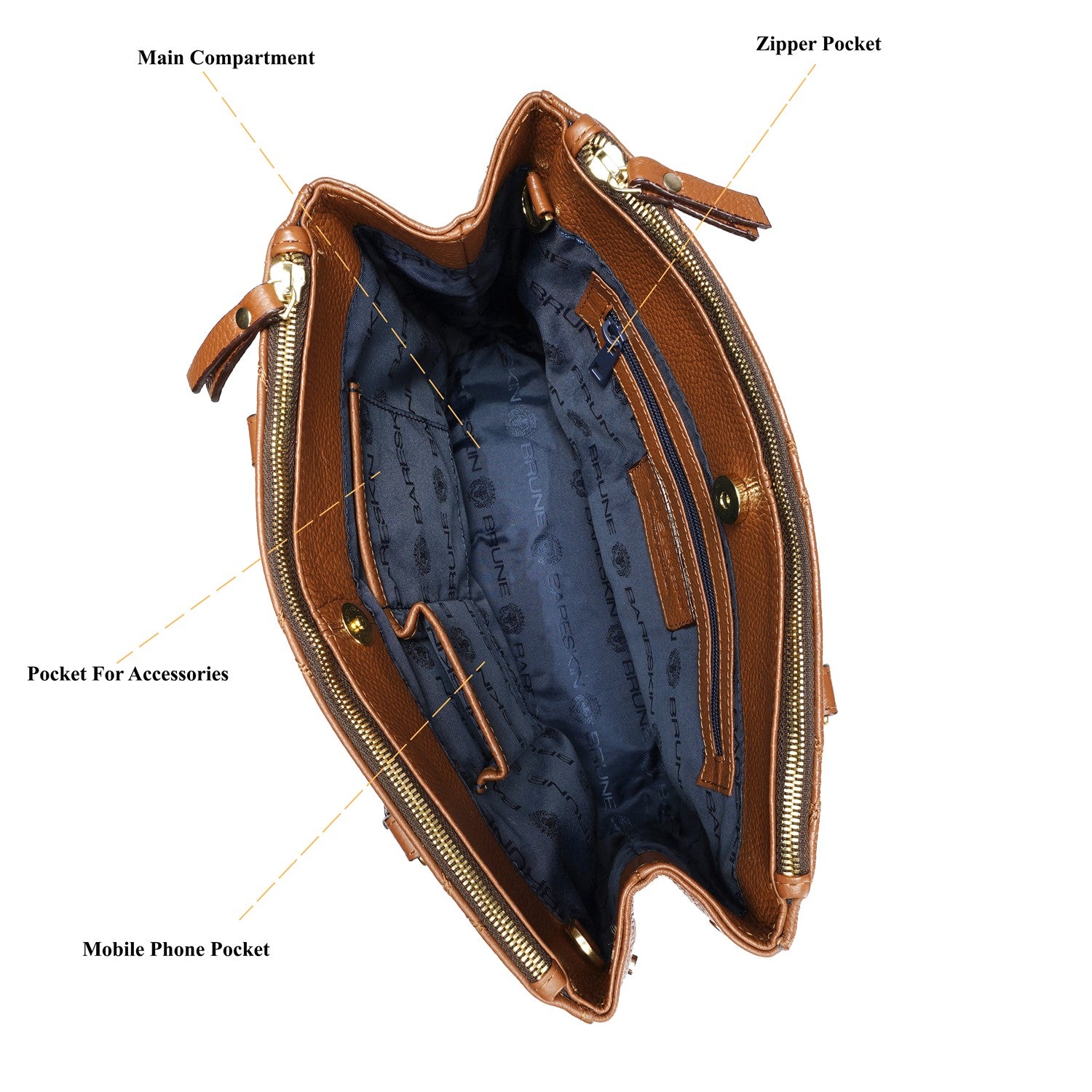 Inside, you'll find a well-organized interior complete with a dedicated mobile pocket, making it easy to grab your phone on the go. An additional accessory pocket keeps your small items—like keys, lipstick, or earbuds—neatly stored and within reach. Whether you're heading to the office, brunch, or a weekend getaway, this handbag blends timeless style with everyday practicality.