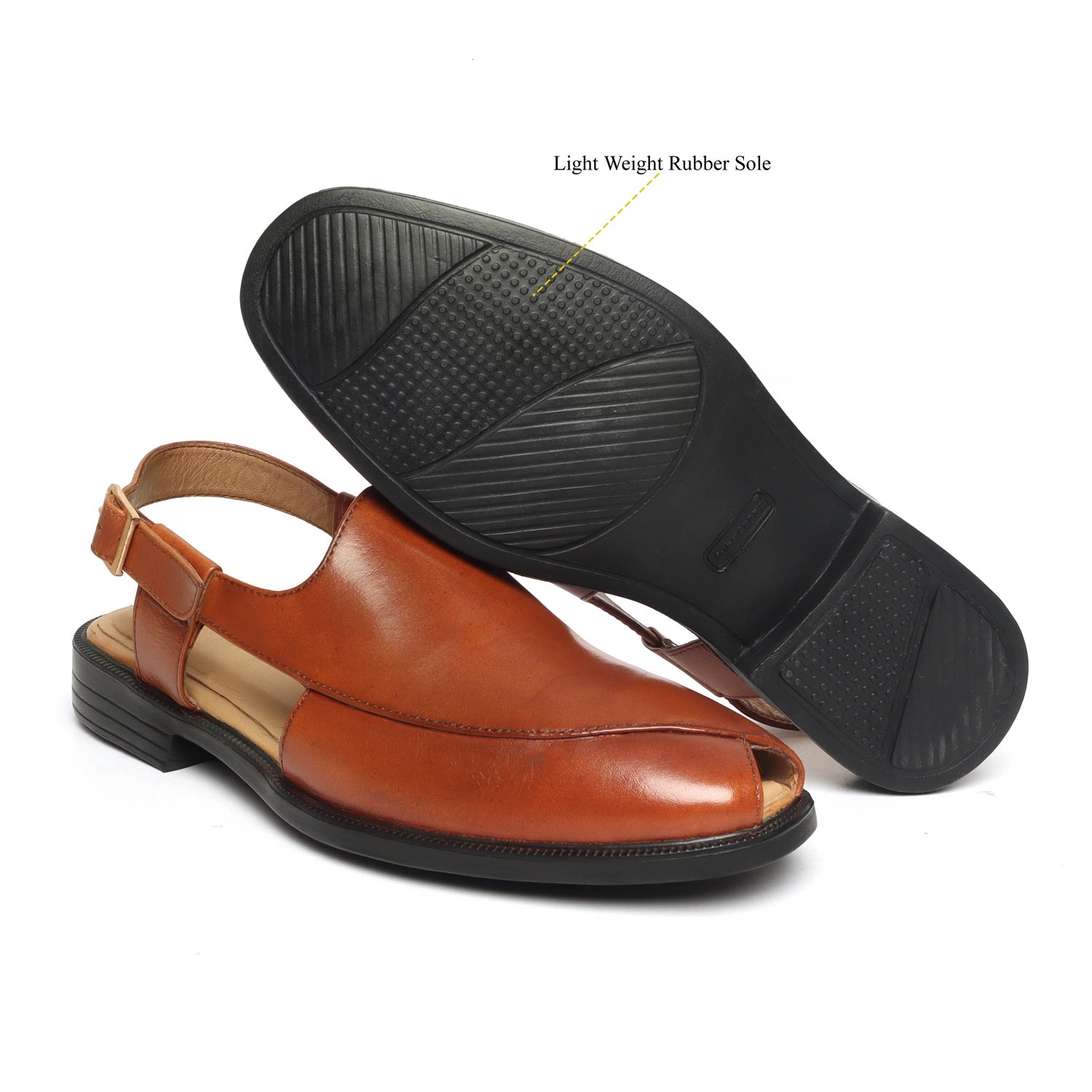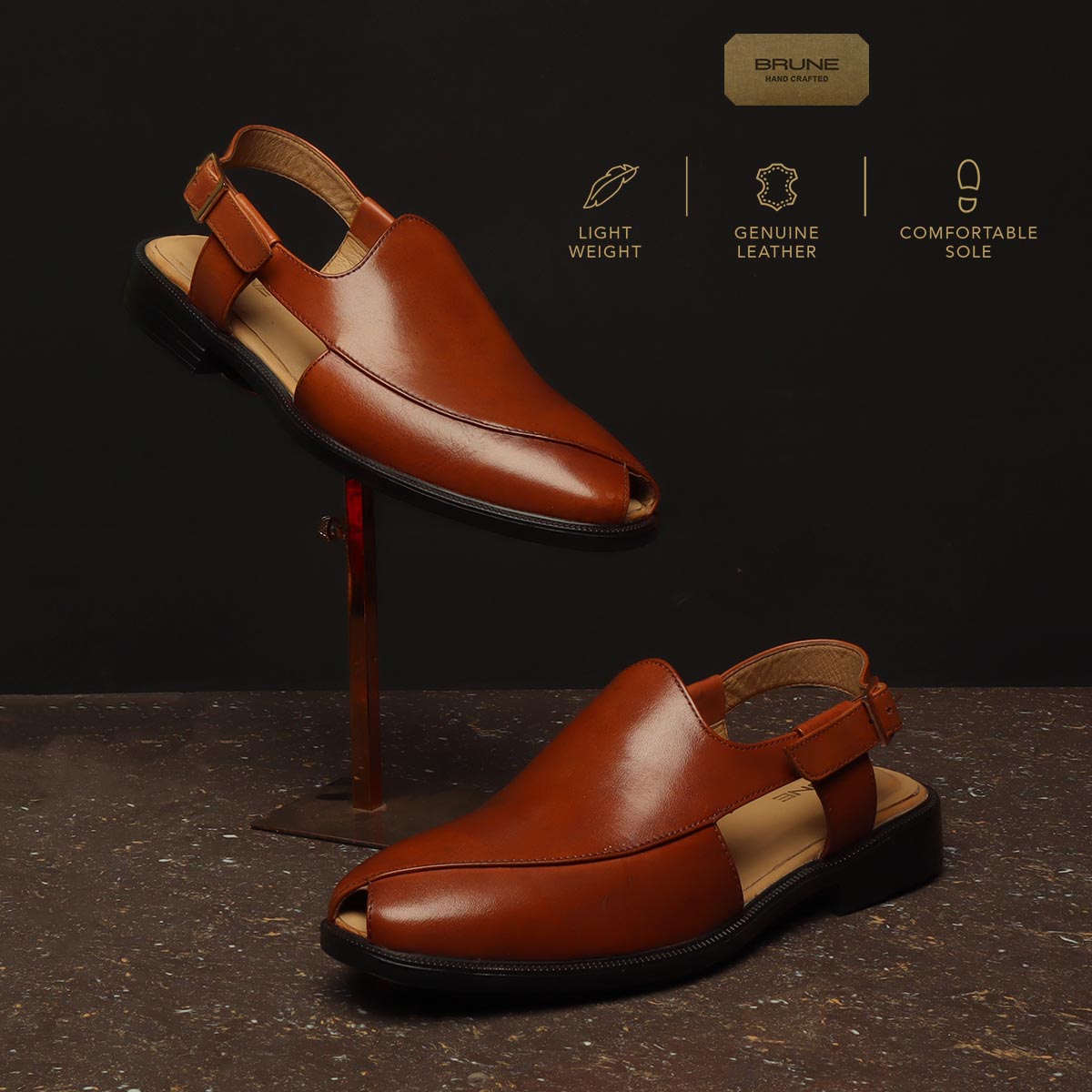 A pair of Tan Genuine Leather Peshawari Sandals by Brune & Bareskin gives you the marvelous looks with any type of outfit. These light weight sandals surely increase the macho quotient in your style. These Sandals are precisely crafted with quality and the latest trends in mind. Rubber Sole provides Comfort, grip, and durability to them.