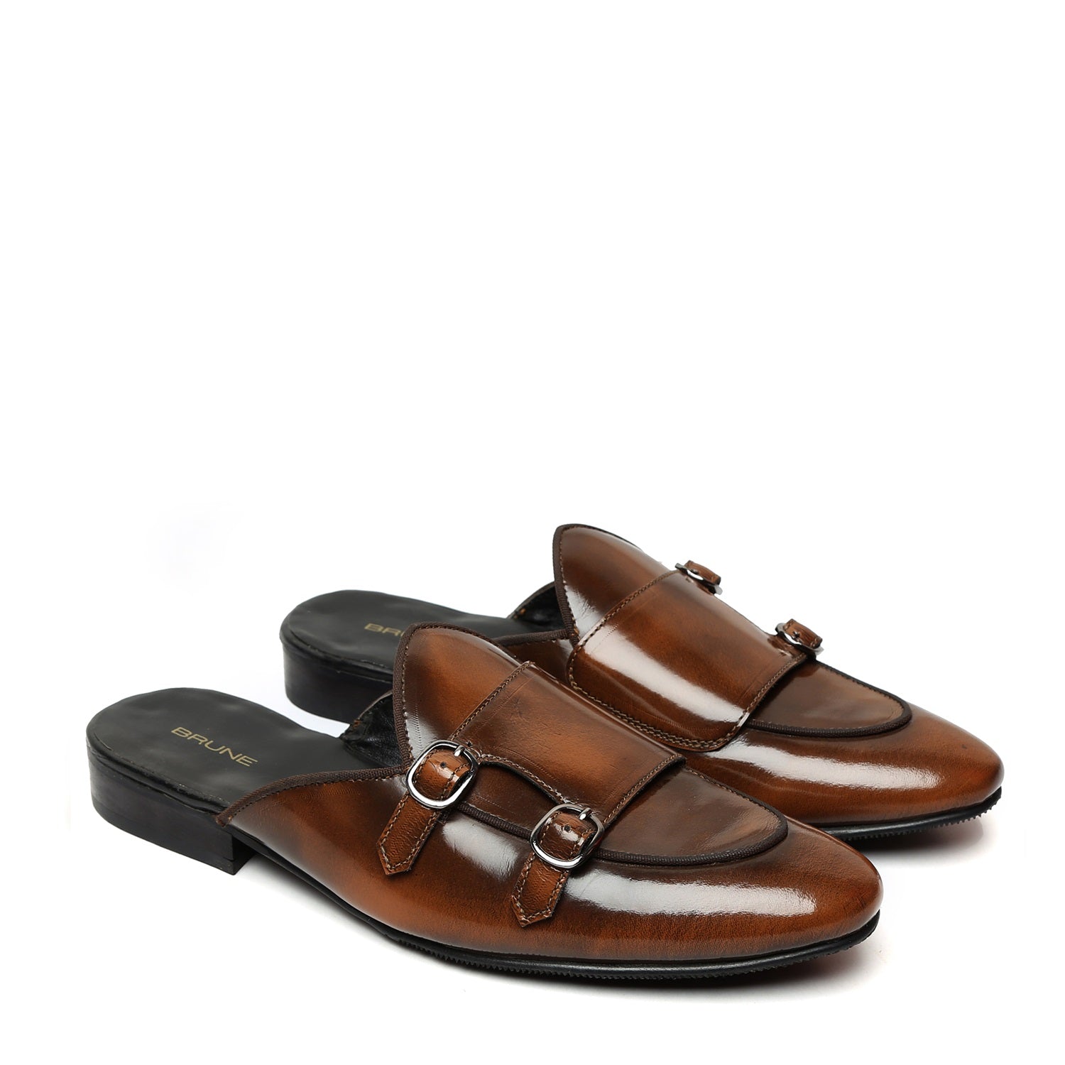 These Brown Dual Shade Brush Off leather designer Slide Slippers will make you the center of attraction wherever you go. It is perfect for summer occasions as it can be worn as a slip on slipper yet looking as formal as any Formal occasion shoes. They provide the looks of apron and double monk style at the same time. You can enhance your fashion statement for any occasion. These slippers are the perfect partners from office to party.