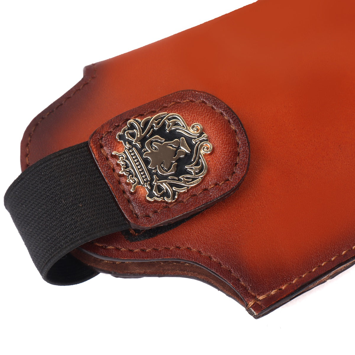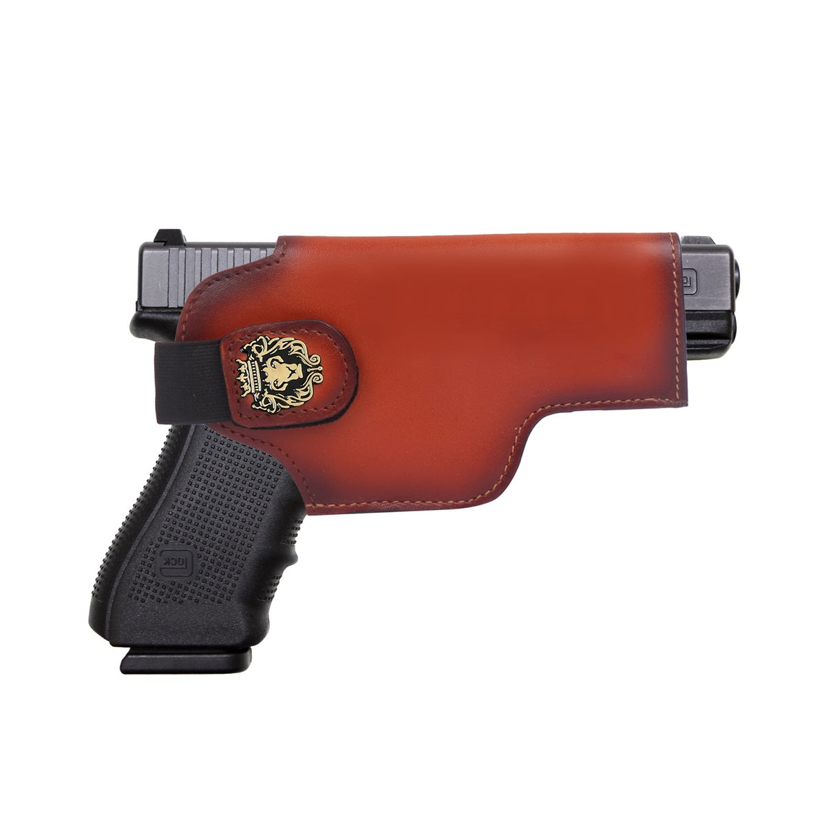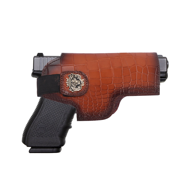 Safety & security both are important keys to keep a gun with you. This Dark Brown Glock-cover is a perfect choice for you. It is made with superior quality of imported leather to keep your Gun. It's super stylish & elegant Glock cover by BRUNE & BARESKIN. Made of Genuine leather in dark brown color. Brune & Bareskin's signature metal lion logo on wide Velcro strap is added to enhance the elegance further. It gives classy look to a person when some one holds it. This can be customized to any size weapon .32, Glock, 9mm and .45 pistol. We offer name Initials and other personalization like color change, laser engraving of logos or slogans. For this please write to us by choosing the "customization tab"