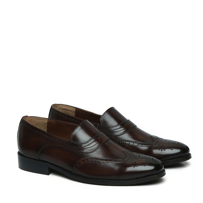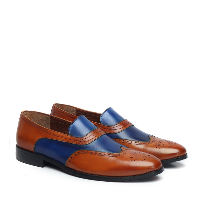 This is very stylish and elegant pair of shoes out there. It is the perfect merger of Italian Leather. The green and rich tan color looks very chic together. It is a perfect pair of footwear for parties. Slip-on closure provides the easy access to wear it. Wingtip Brogue toe enhances its presence. It is a must have accessory for the modern gentlemen.