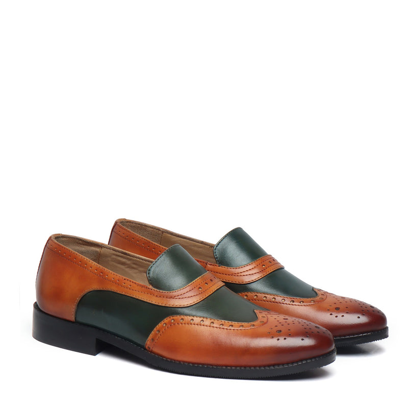 Tan-Green Leather Sassy Slip-On Shoe