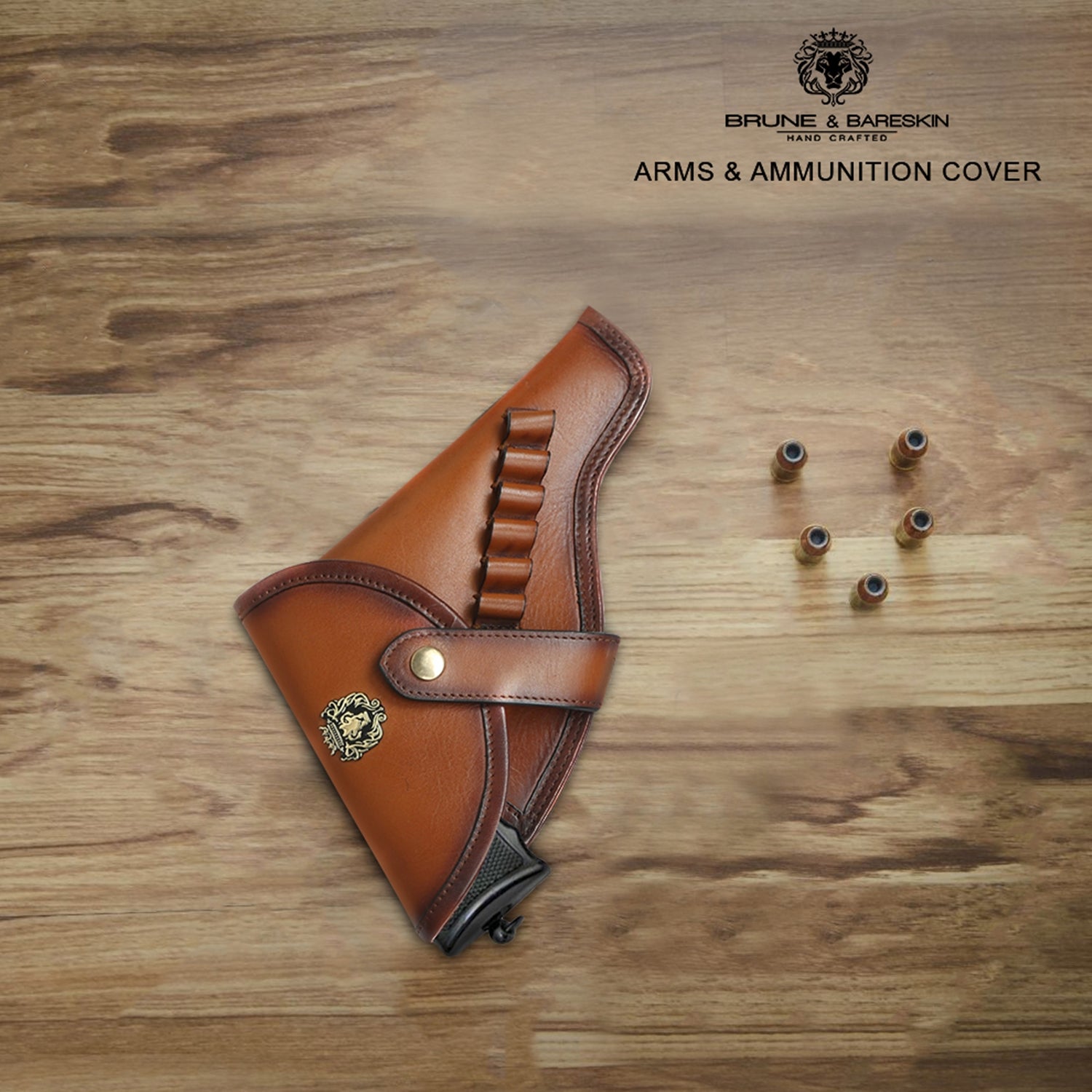 Hand Burnished Gun & Bullets Holder Cover in Tan Genuine Leather(MTO)