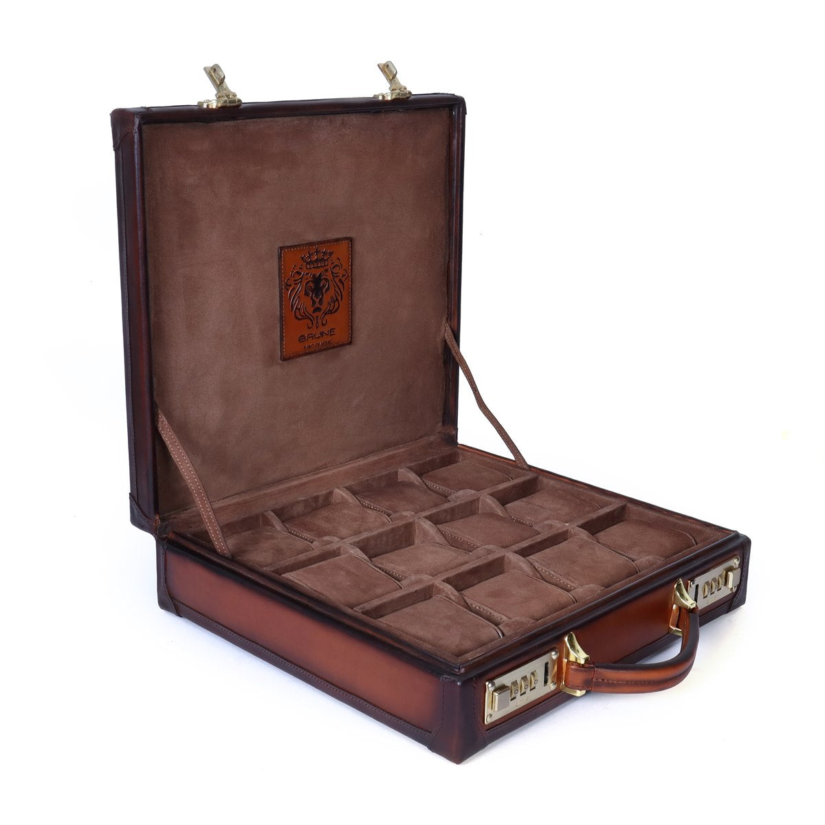 Tan Hand Painted Leather 12 Wrist Watch Carry Briefcase by Brune & Bareskin