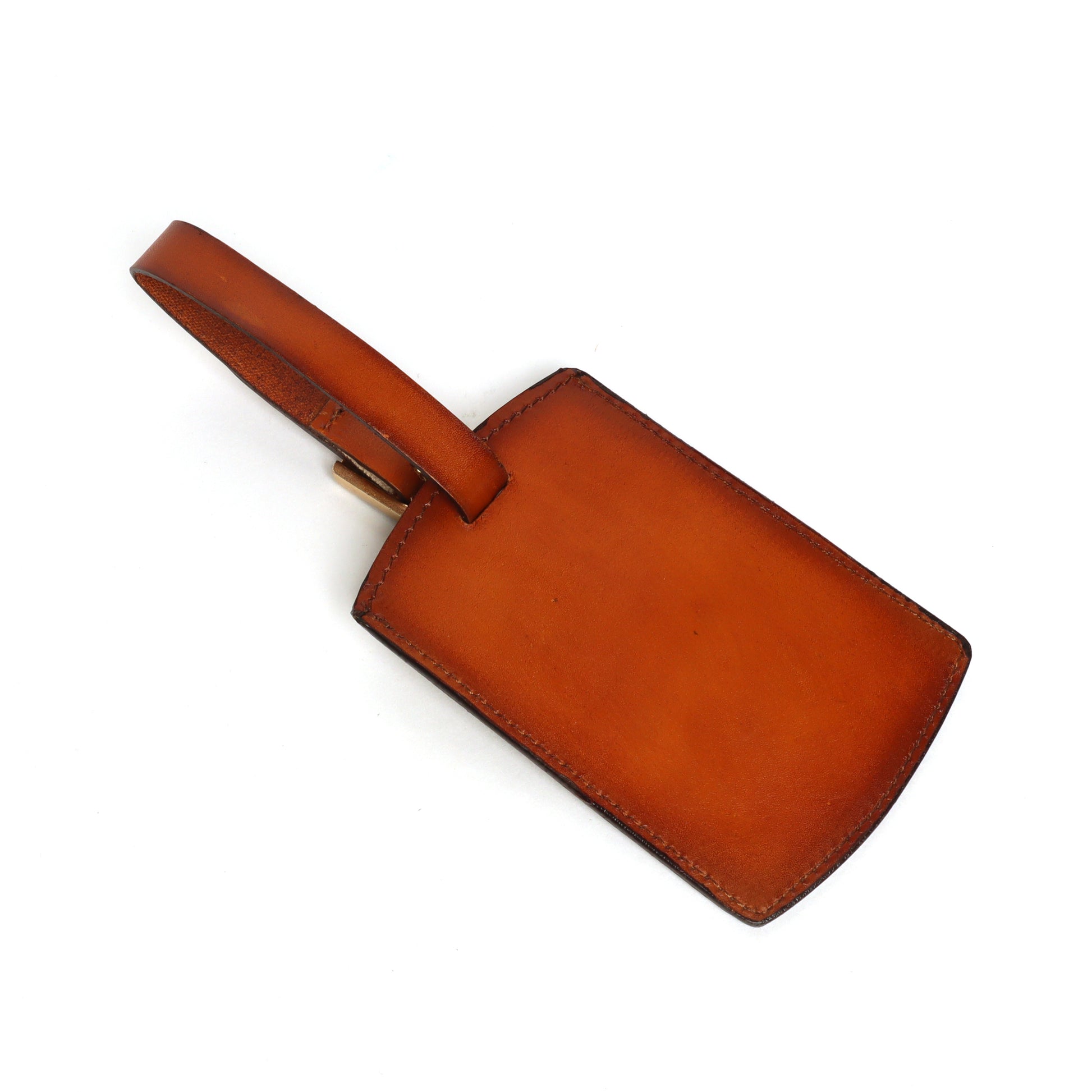 Tan High Veg Tan Leather Bag Tag by Brune & Bareskin