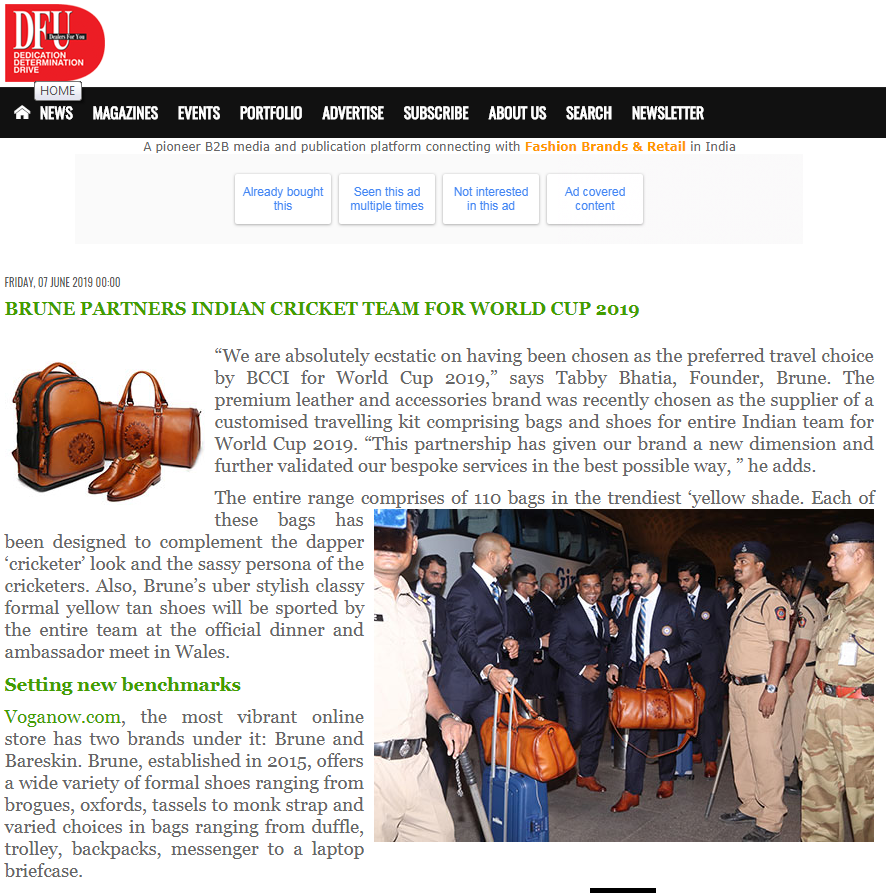 In this Corporate Order, we've provided the Backpack, Footwear, and Duffle Bag to BCCI for Team India 2019 World Cup Tour.