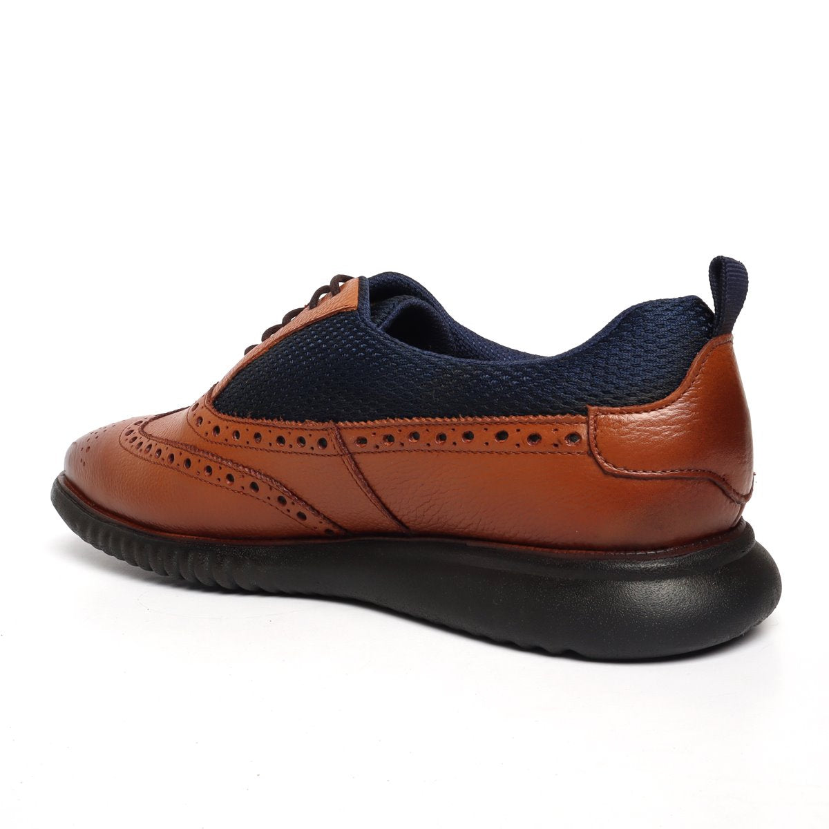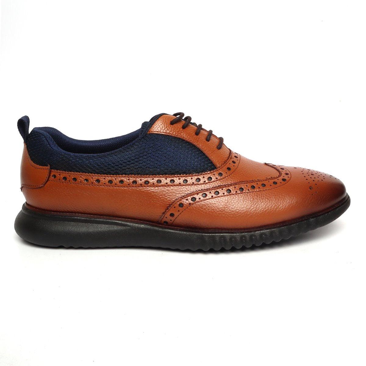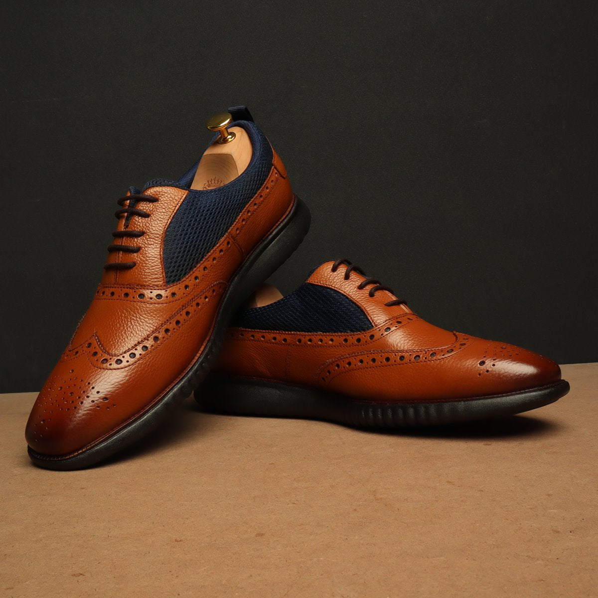 Tan Leather Blue Mesh Light Weight Dress Sneakers by BRUNE & BARESKIN