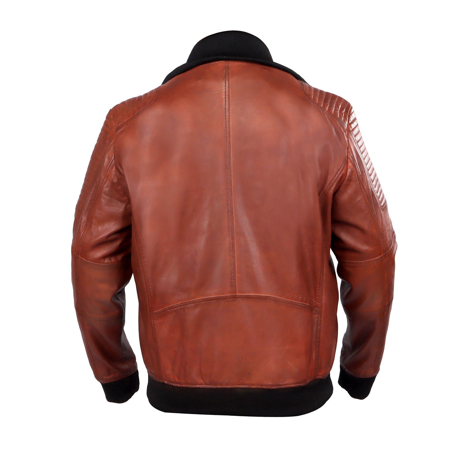 Tan Leather Contrasting Woven Collar Bomber Jacket By Brune & Bareskin