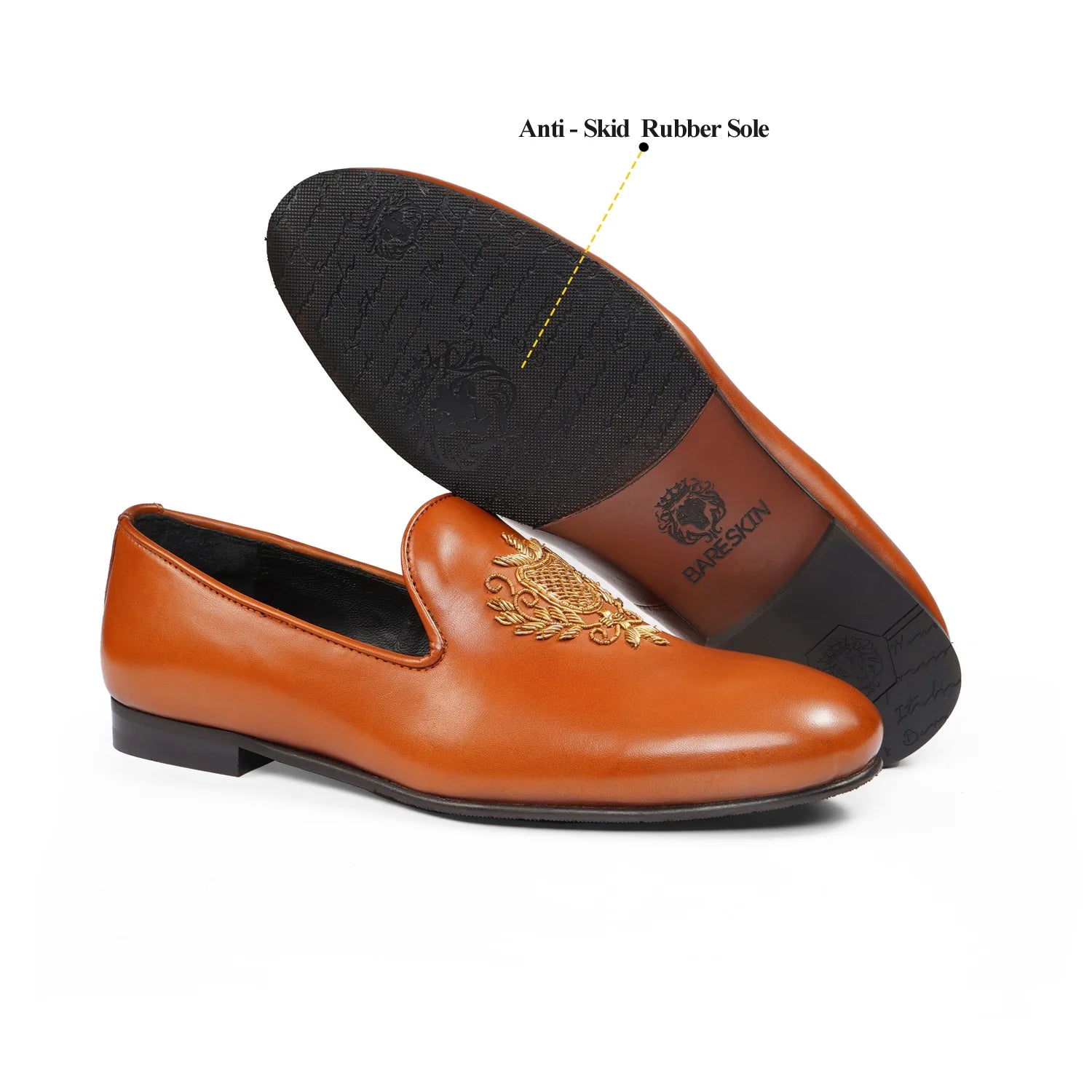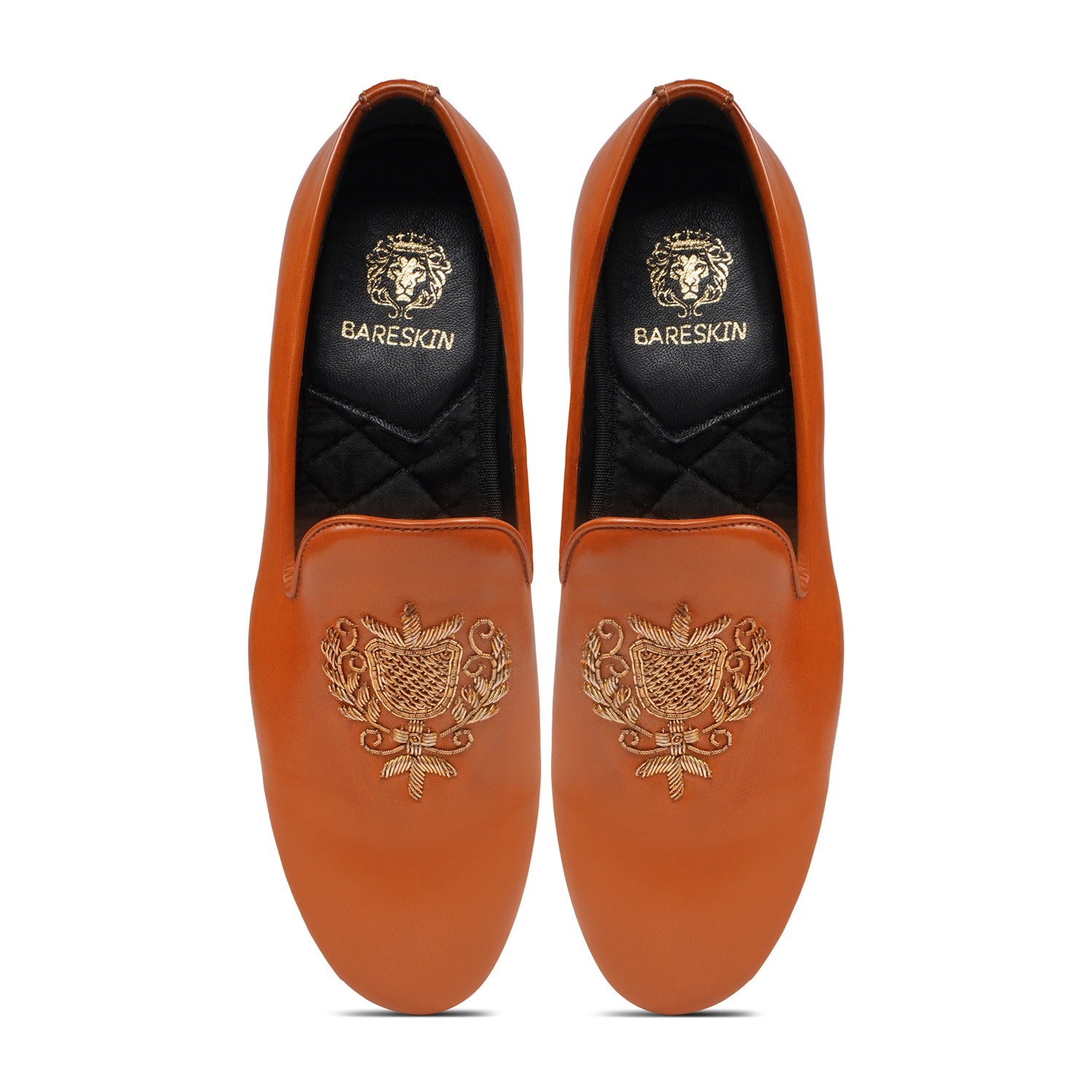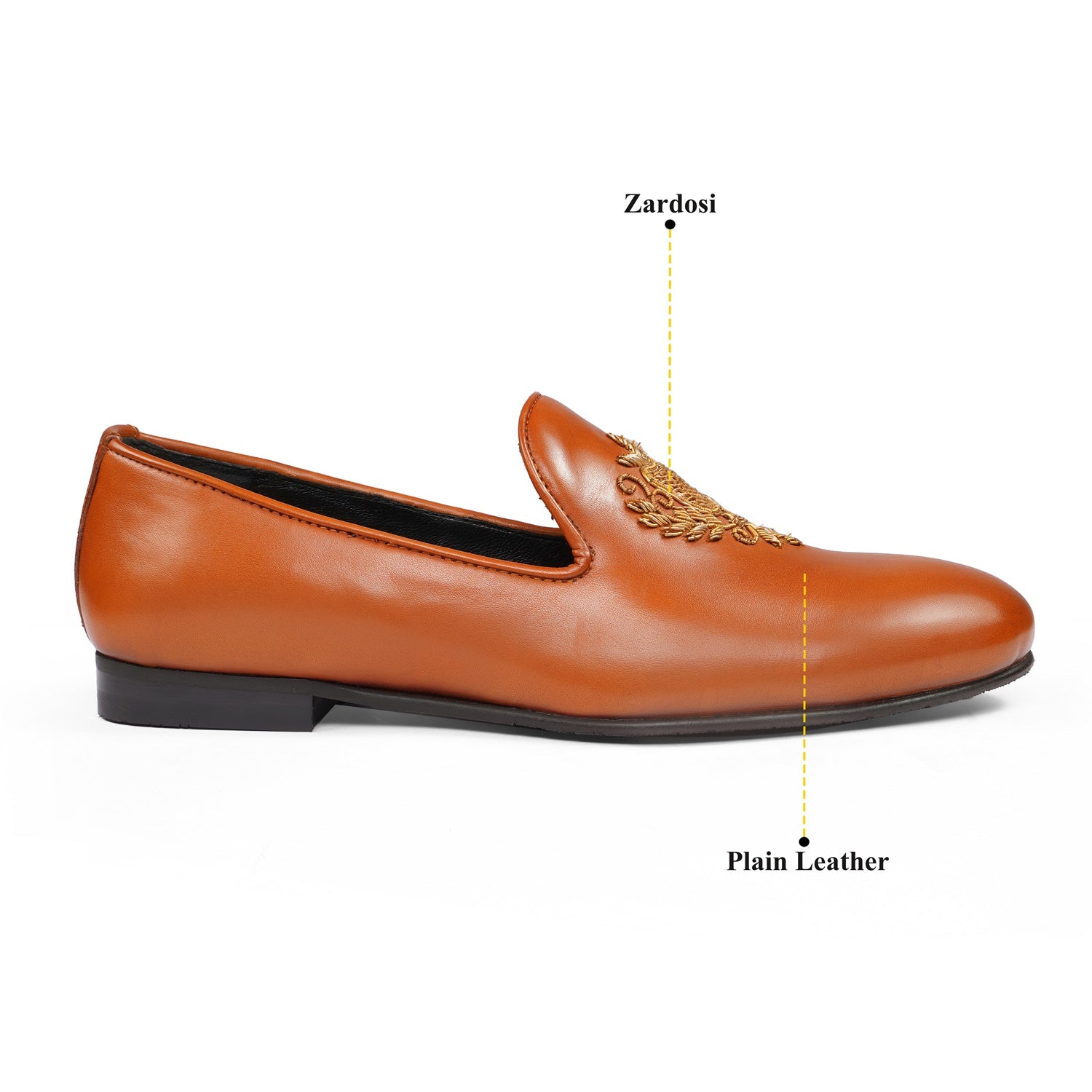 The hand-zardosi on tan Italian leather looks astonishing. These ethnic slip-on shoes are made to provide the perfect look. Zardosi Hand Work done by the most skilled sewing team in the country, makes this slip-on distinct from others. You just don't wear to Brune & Bareskin Shoes to Look Good, you wear them, Because it emphasis your dapper side out. Pair these Ethnic Slip-ons with ethnic apparel and be the show-stopper at any party.