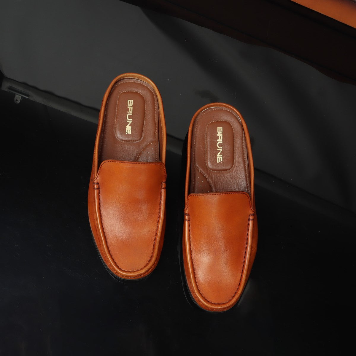 Tan Leather Elegant loafer Mules By Brune & Bareskin