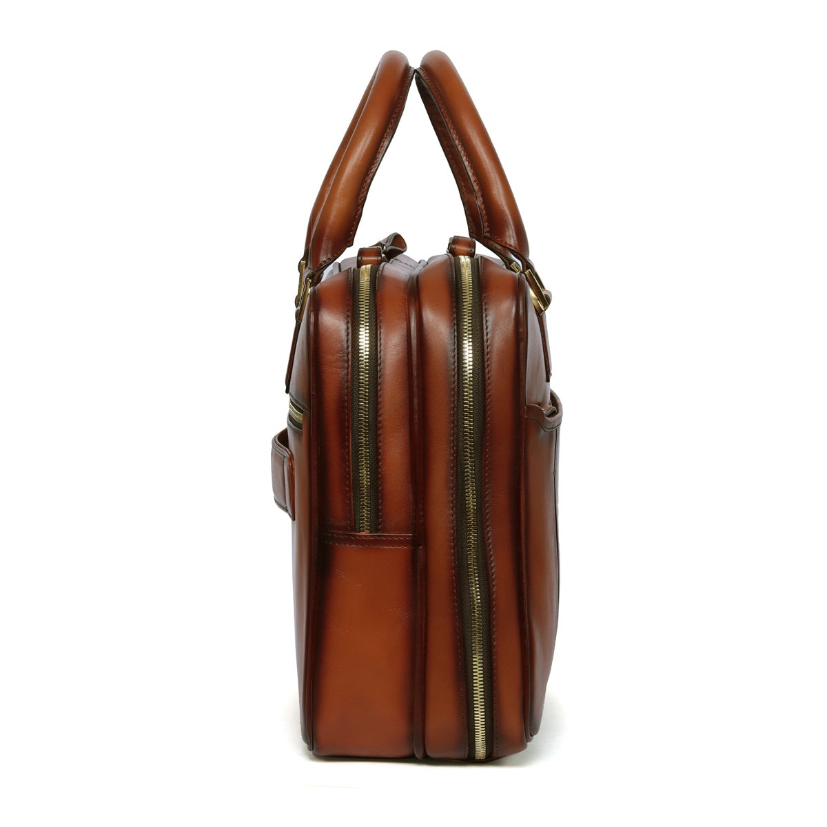 Tan Leather Laptop Briefcase Bag with Double Zipper Compartment