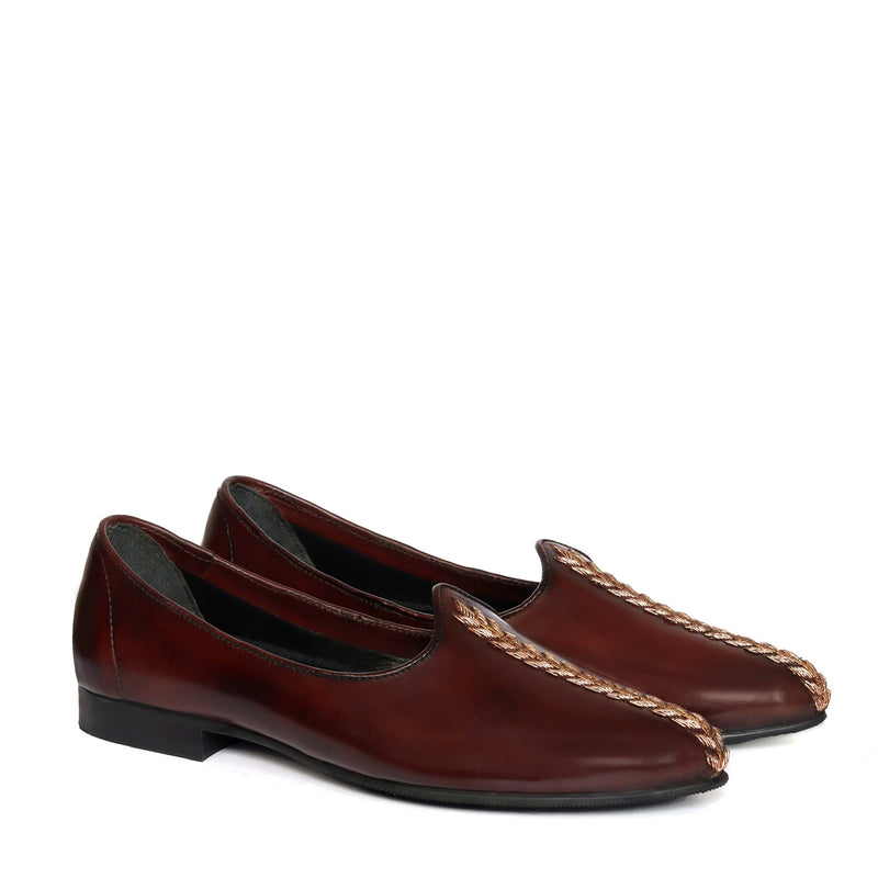 Tan Leather Jalsa with Leaves Stem Hand Zardosi