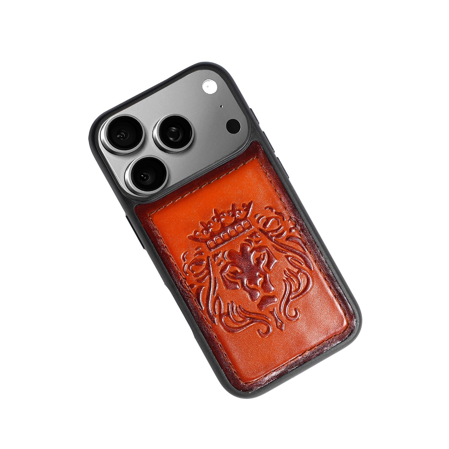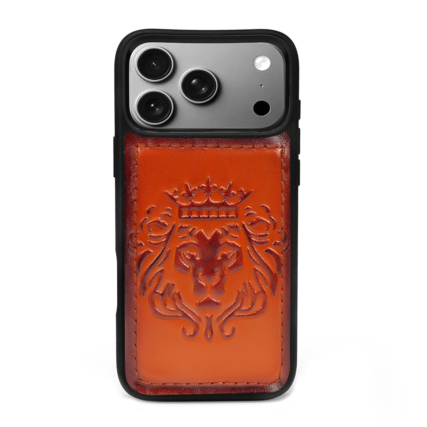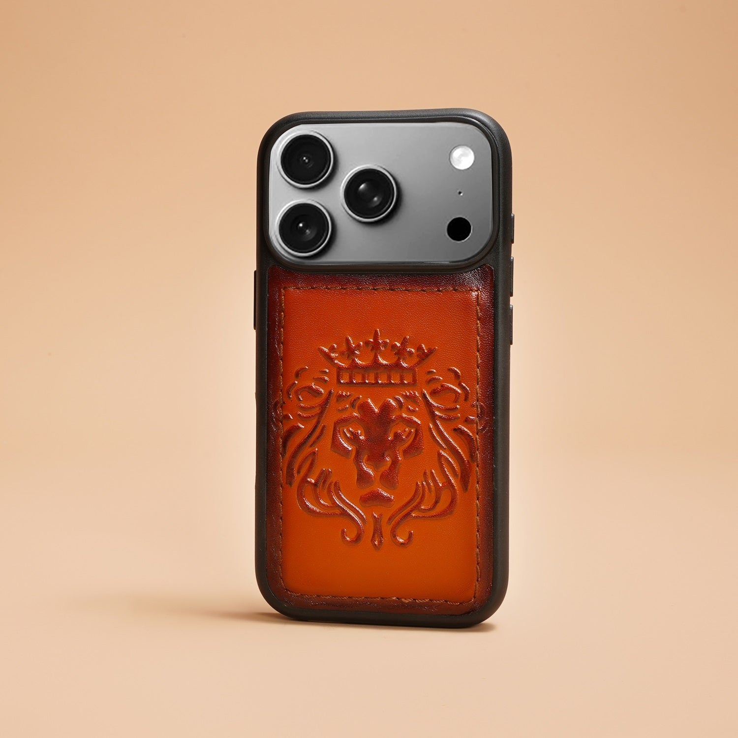 Tan Leather Lion Embossed iPhone 17 Pro & 17 Pro Max Mobile Cover