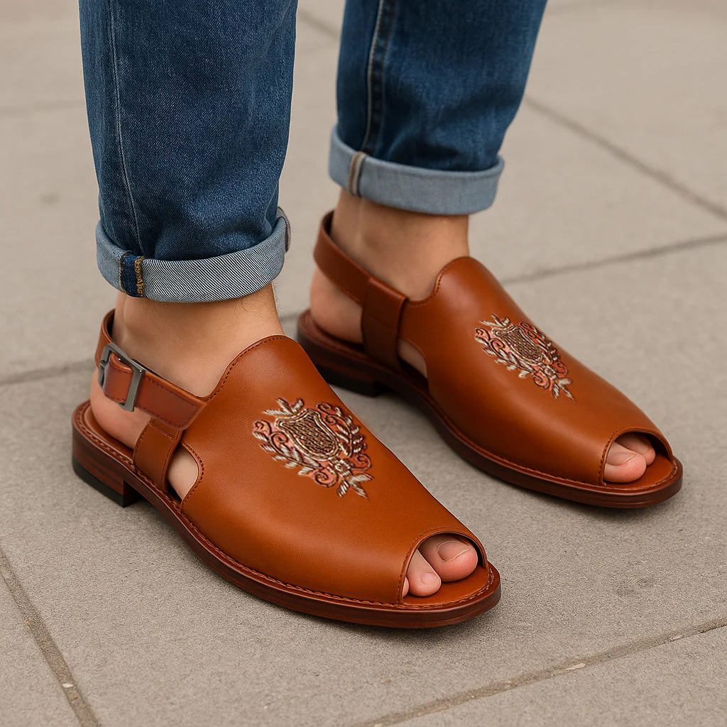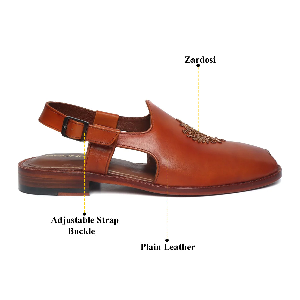 Tan Hand Zardosi Peep-toe Peshawari Sandals