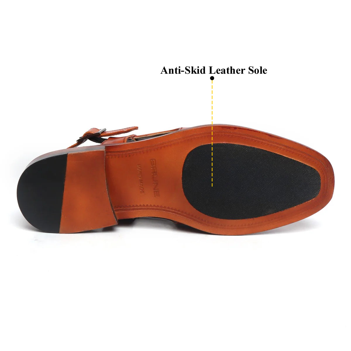 A pair of Tan Genuine Leather Peshawari Sandals by BRUNE & BARESKIN gives you the marvelous look. Hand Zardosi on the front enhances its elegance further. Wear it with ethnics and sherwanis to lead the style game. The leather sole surely increases the macho quotient in your style. These Sandals are precisely crafted with quality and the latest trends in mind.