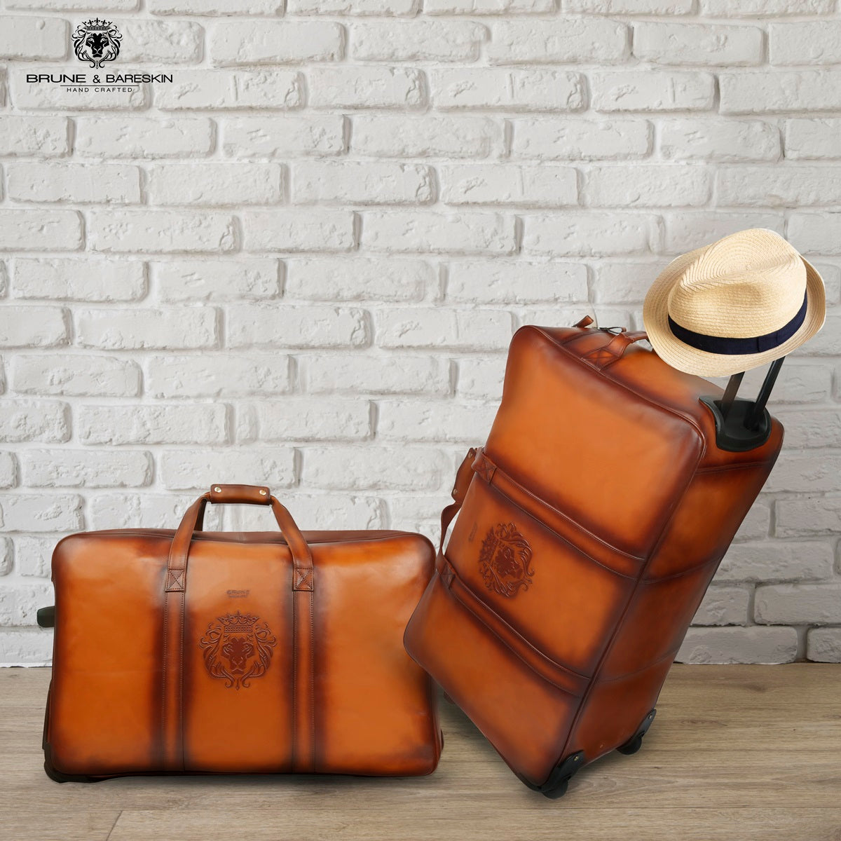 Tan Leather Roll Along Trolley Duffle Bag by Brune & Bareskin
