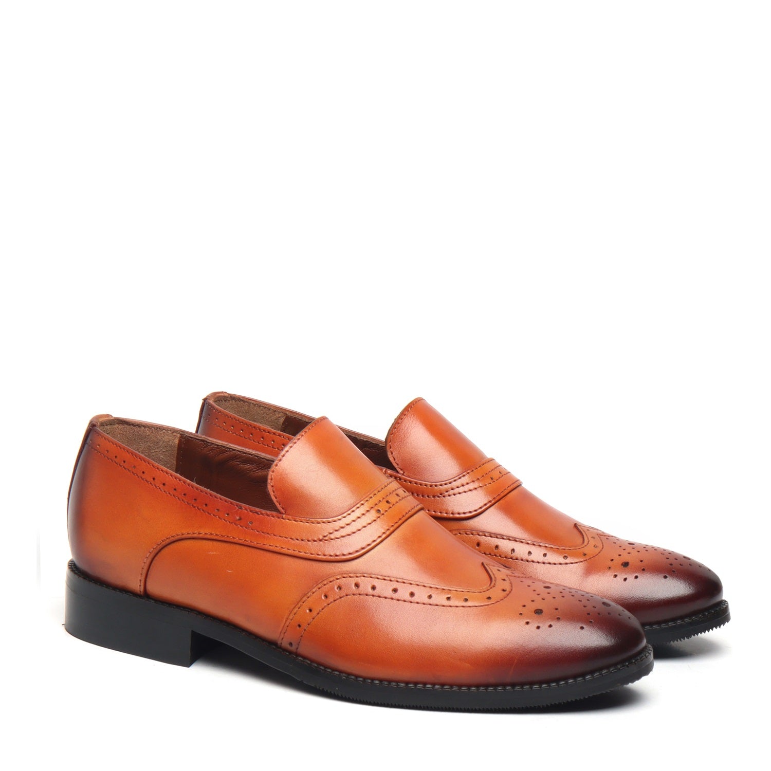 This is very stylish and elegant pair of shoes out there. It is the perfect merger of Italian Leather. It is a perfect pair of footwear for parties. Slip-on closure provides the easy access to wear it. Wingtip Brogue toe enhances its presence. It is a must have accessory for the modern gentlemen.